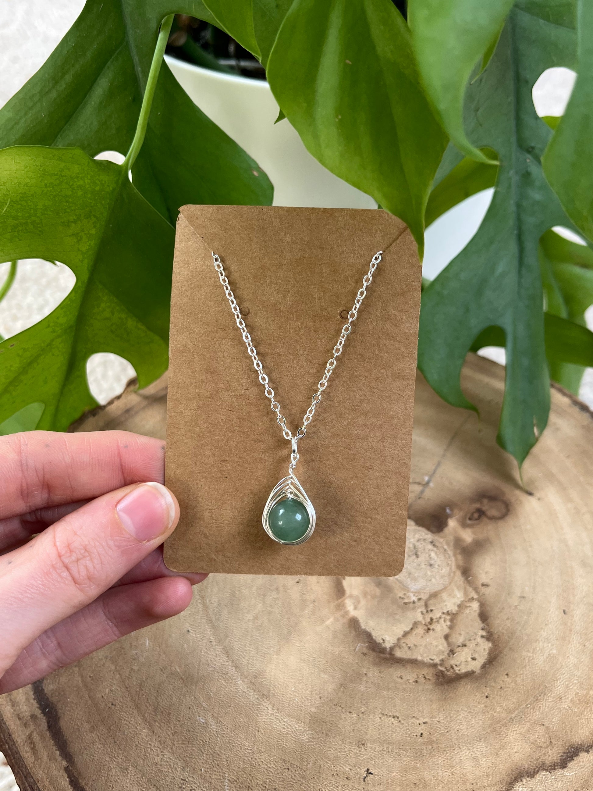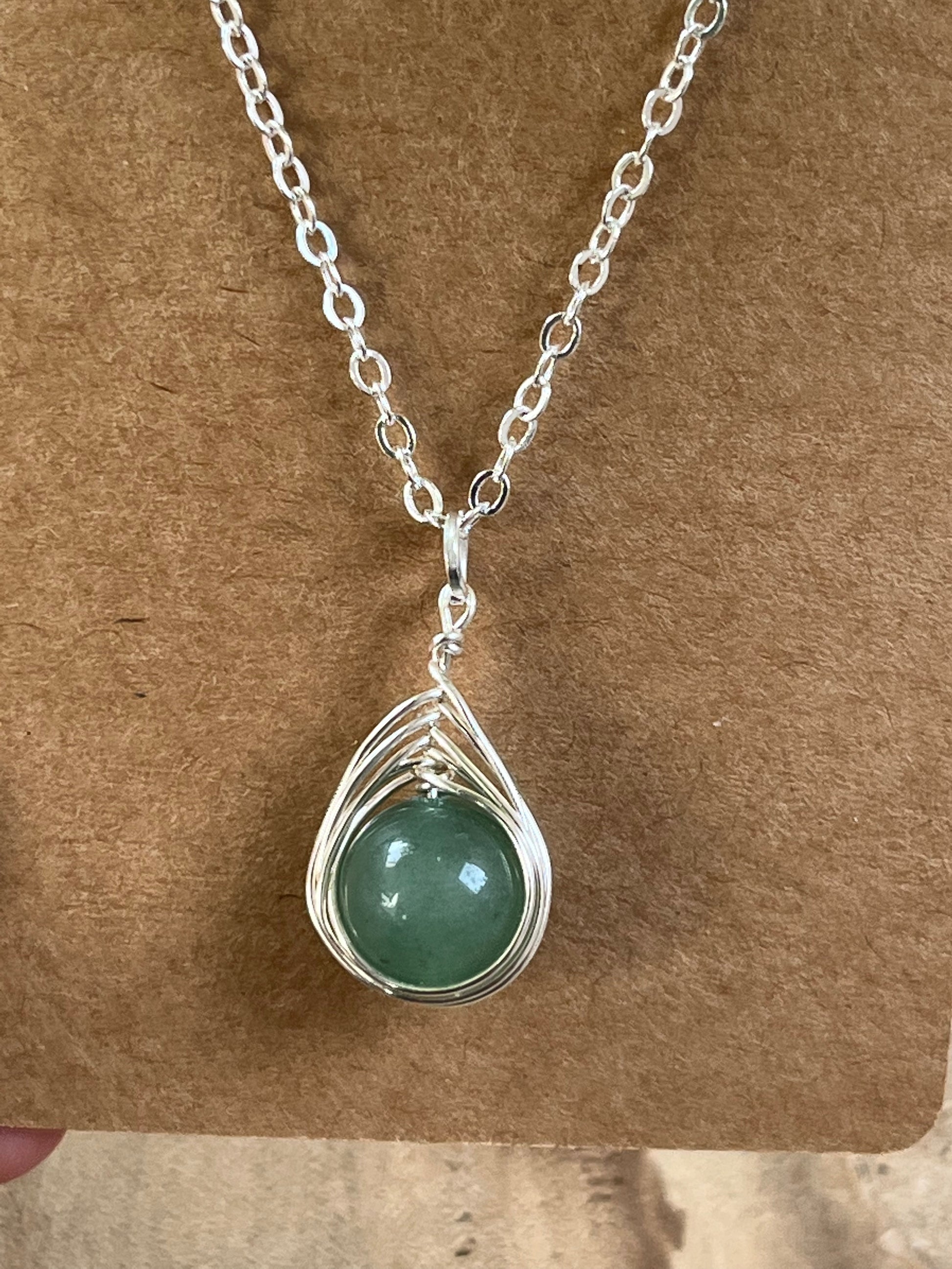 Silberne Aventurin Halskette handgefertigt in Draht gefasst. Mit verstellbaren Verschluss