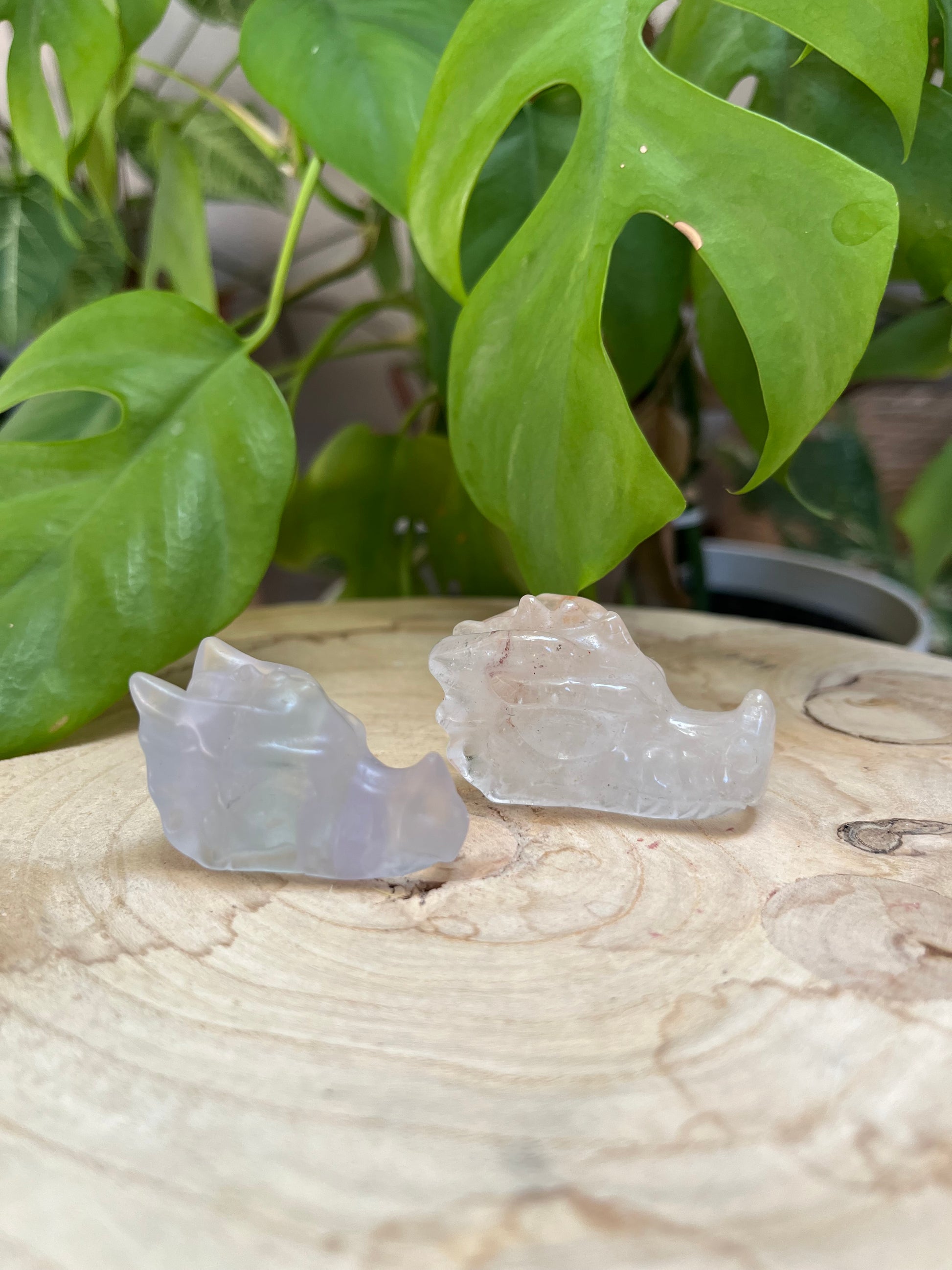 Drachenkopf Gravur – Fluorit oder Bergkristall – Schutz, Klarheit & Energie