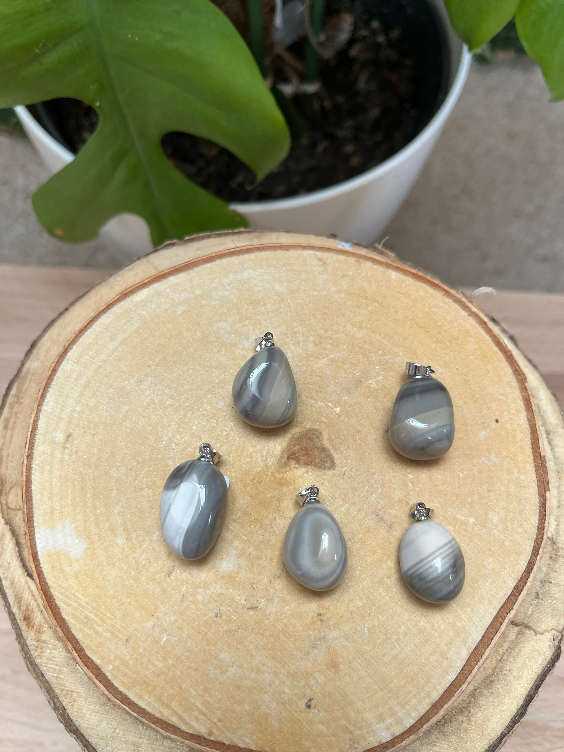 Flint Anhänger mit Stiftöse – Grauer Naturstein mit markanter Struktur