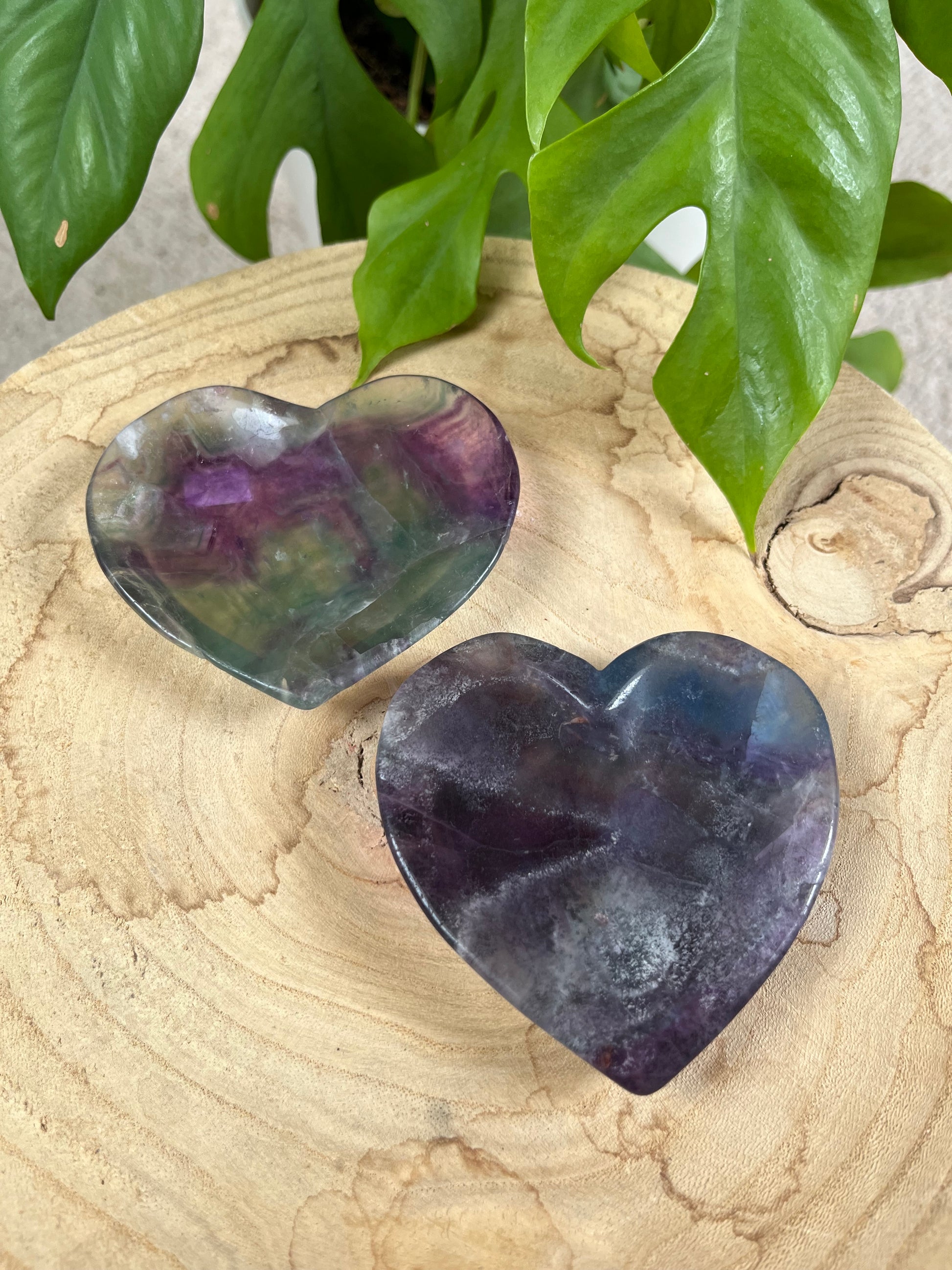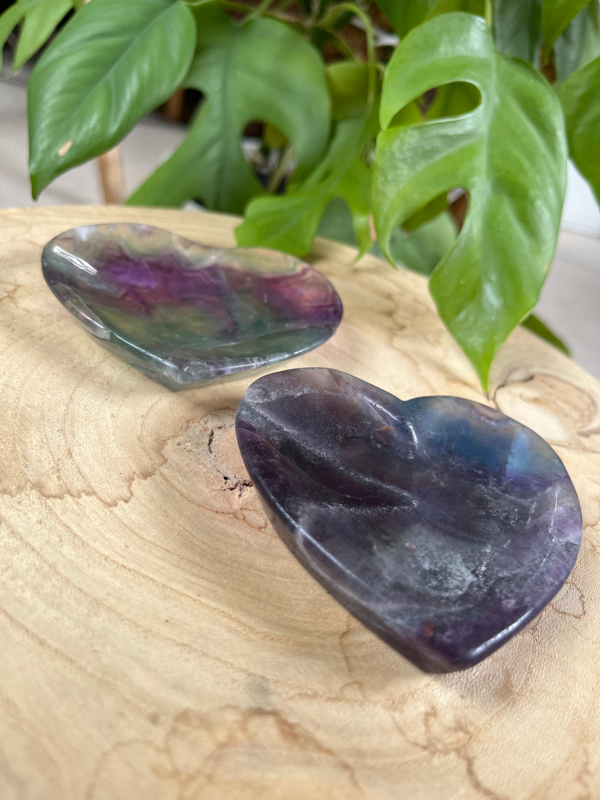 Fluorit gilt als Stein der Ordnung, Transformation und Intuition. In Herzform verstärkt er zusätzlich die Verbindung zu deinem Herzen und hilft, emotionale Blockaden zu lösen. Die Schale eignet sich perfekt zum energetischen Aufladen kleiner Edelsteine, als Schmuckablage oder für kleine Rituale.