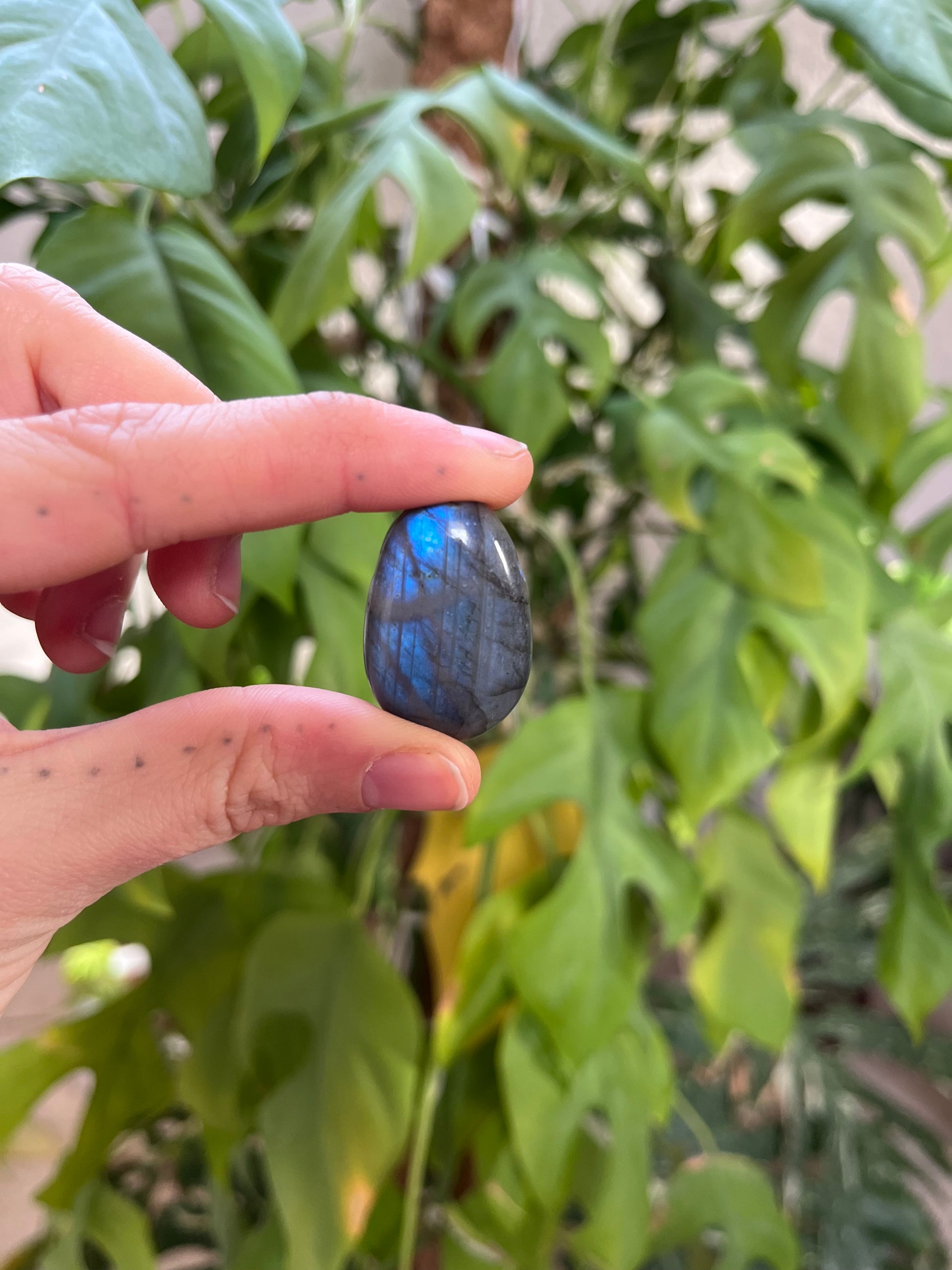 Der Labradorit steht symbolisch für Intuition, Schutz und innere Stärke. Dank der Bohrung und dem inklusive schwarzen Baumwollband kann der Trommelstein direkt getragen werden – schlicht, naturverbunden und alltagstauglich. Jeder Stein ist ein echtes Natur-Unikat.