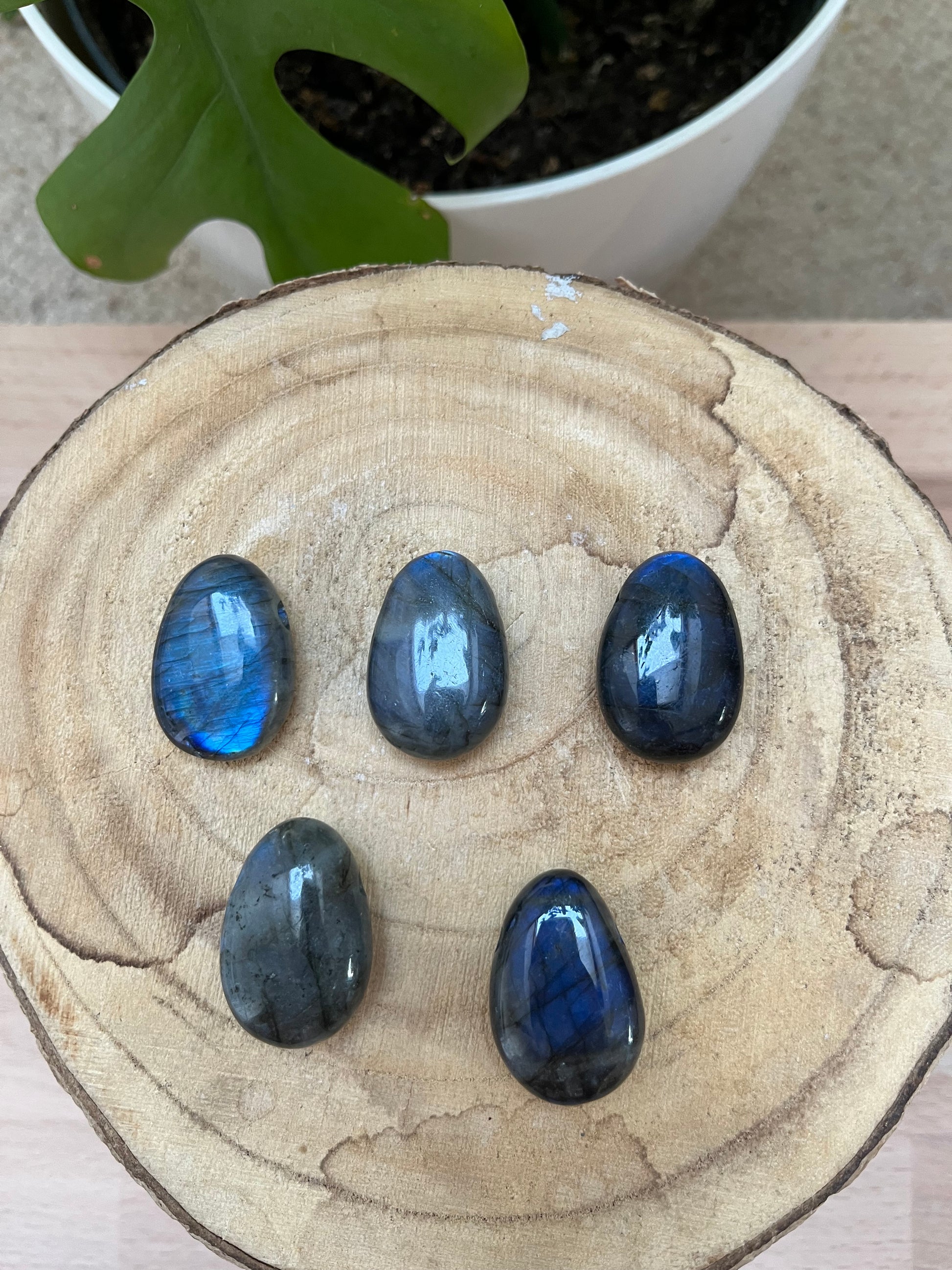 Labradorit Trommelstein – gebohrt | AA Qualität | inkl. schwarzem Baumwollband