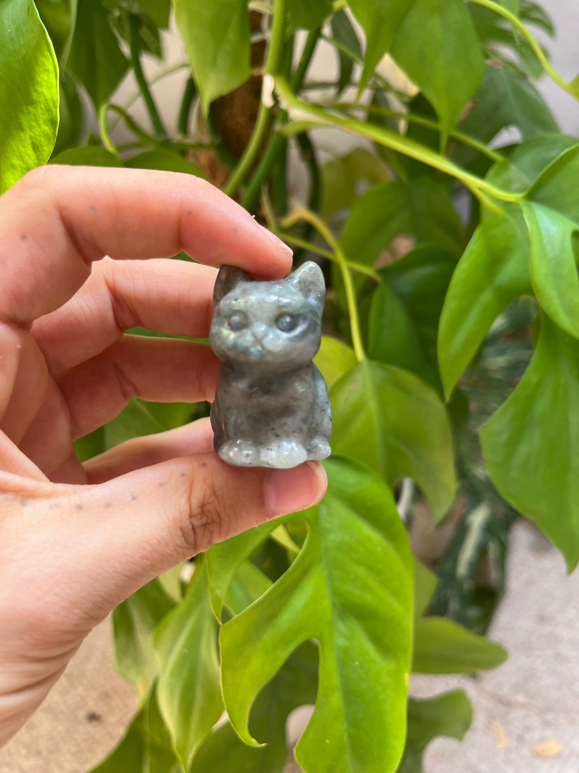 🌌 Labradorit Katzen Gravur 3 cm – Edelstein Katze kaufen für Intuition & Schutz