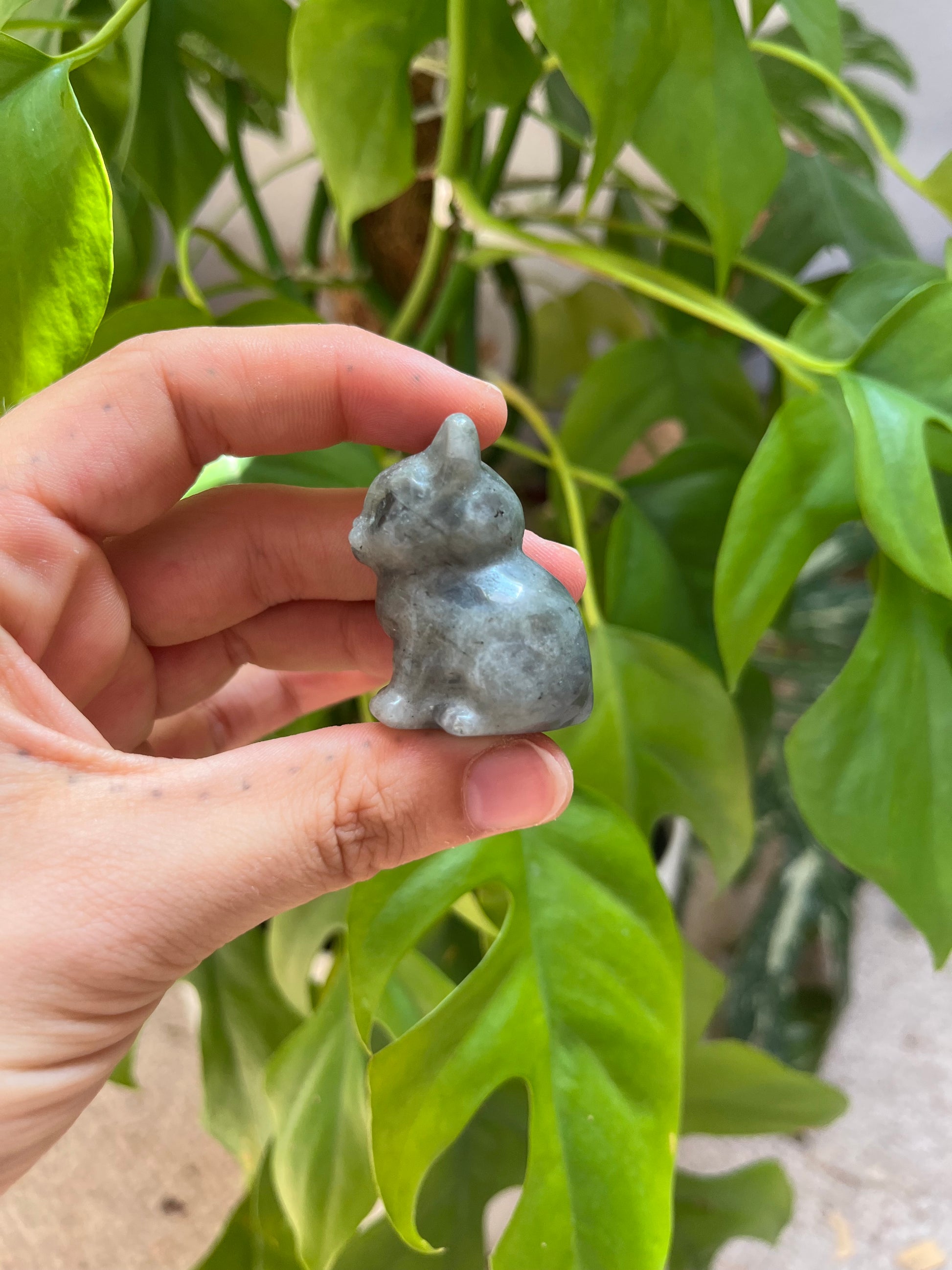 Jede Labradorit Katze ist ein Unikat mit einzigartigem Farbspiel. Die Edelstein Figur verbindet die Magie des Labradorits mit der Krafttier-Bedeutung der Katze.