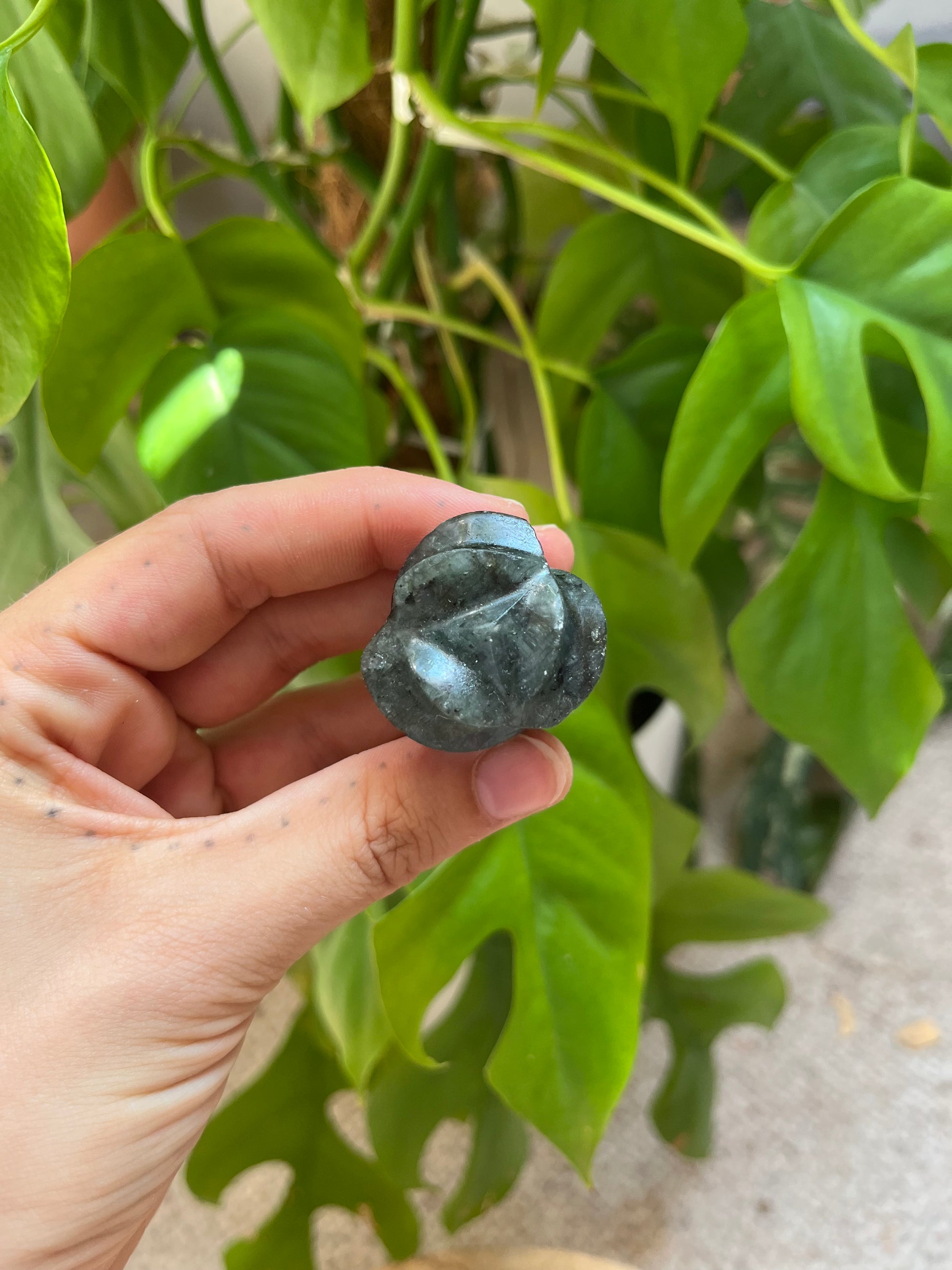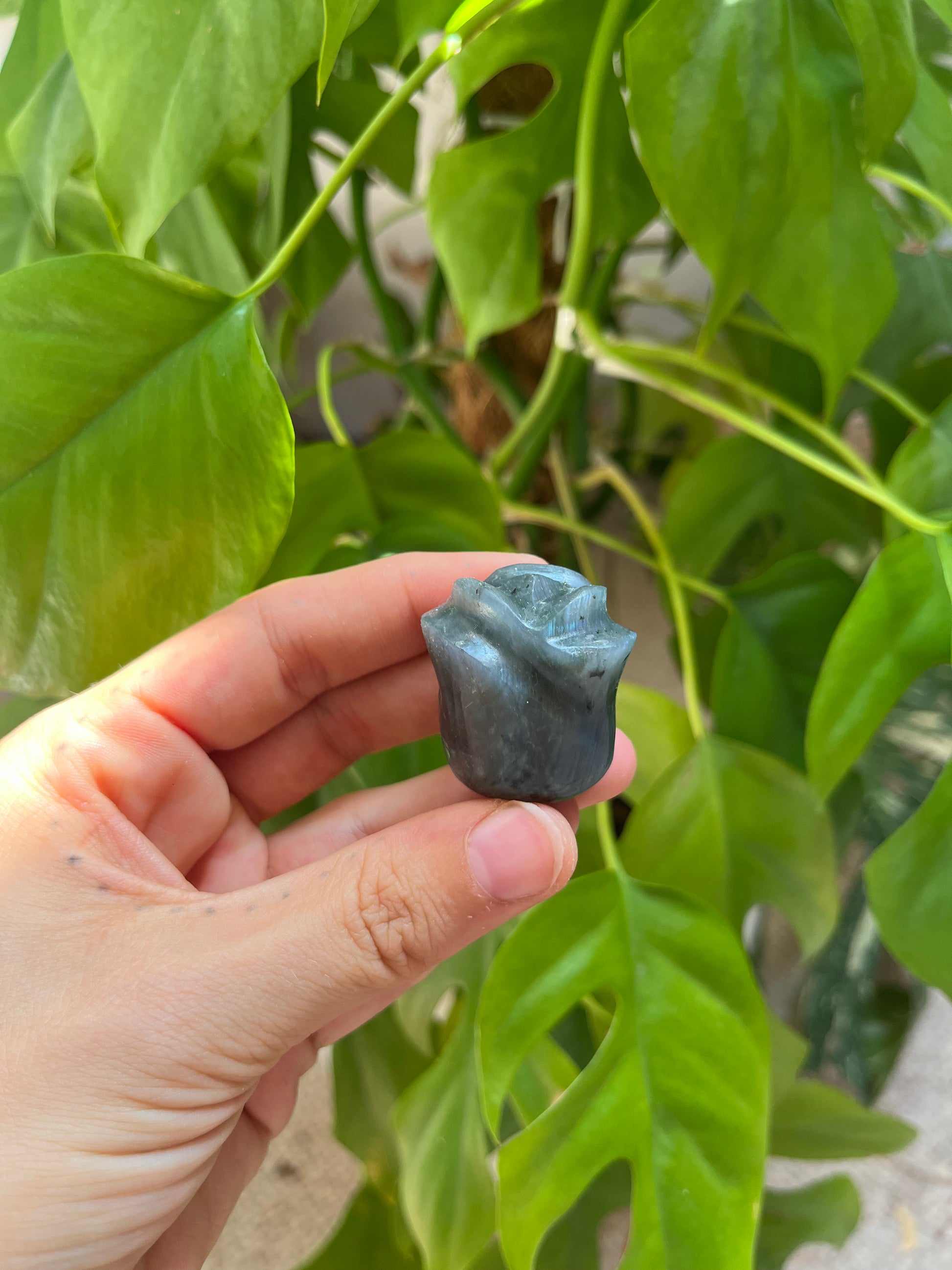 Jede Labradorit Rosen Gravur ist einzigartig und verbindet die zarte Symbolik der Rose mit der kraftvollen, schützenden Energie des Labradorits – ein magisches kleines Kunstwerk.
