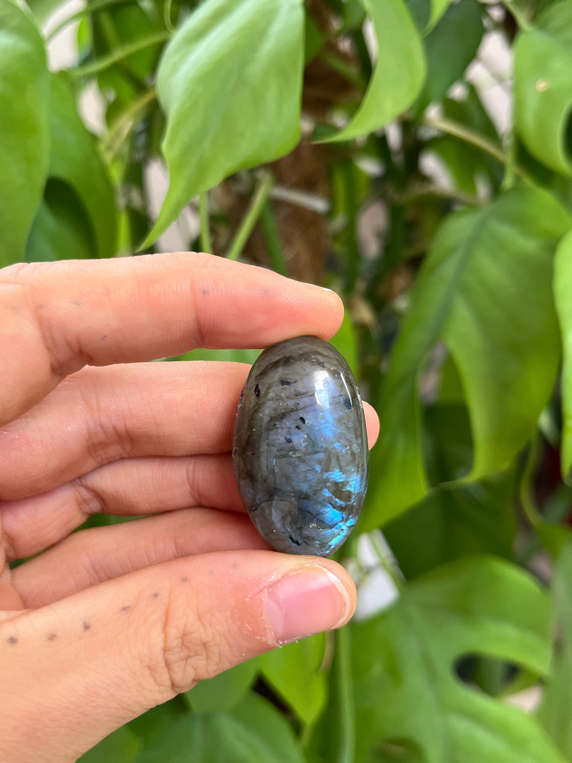 Dieser Labradorit Trommelstein wurde sorgfältig geschliffen und gebohrt, sodass er direkt als Anhänger getragen werden kann. Durch sein faszinierendes Farbspiel – das charakteristische Schillern in Blau-, Grün- oder Goldtönen – ist jedes Stück ein einzigartiges Natur-Unikat.