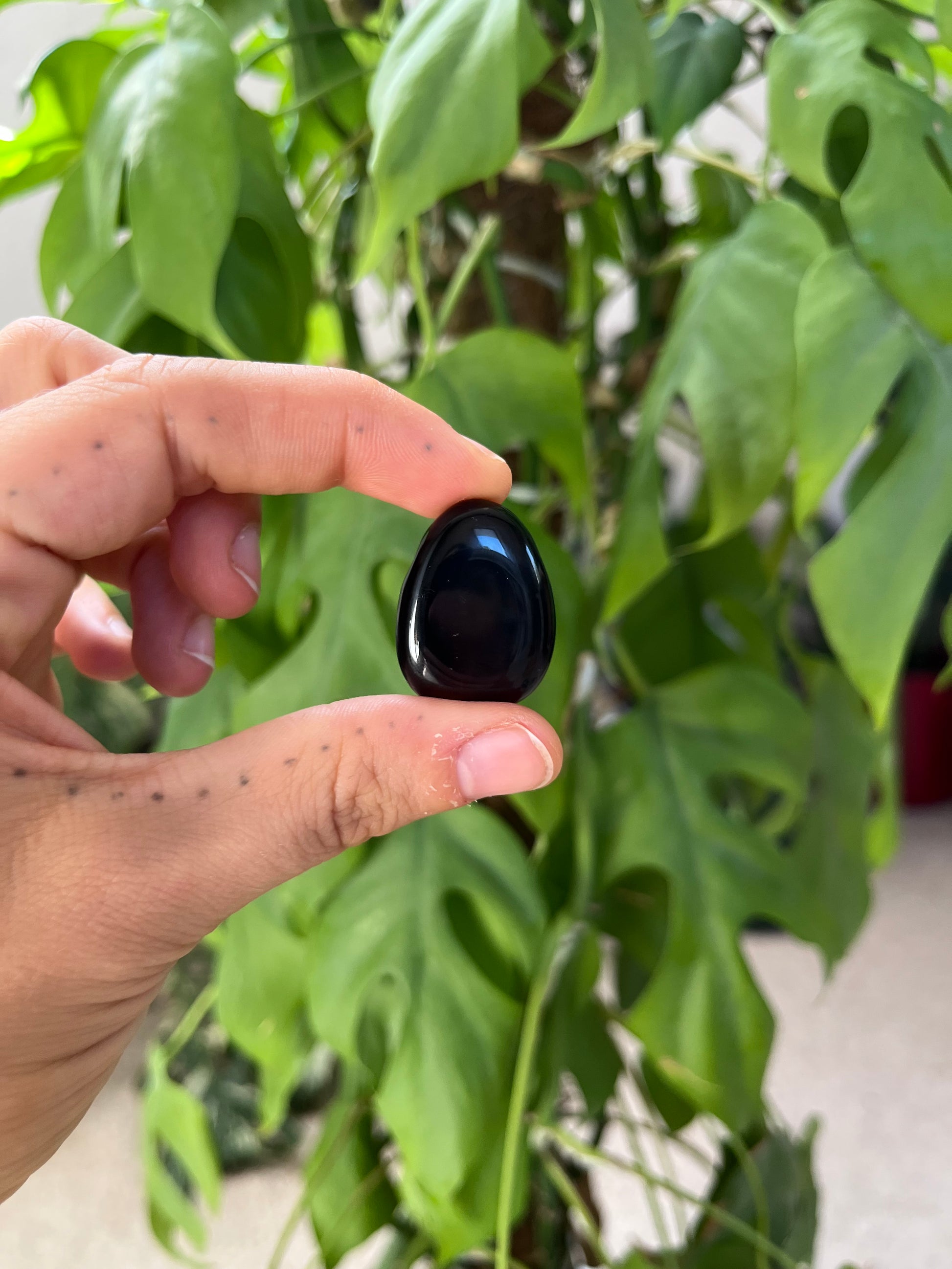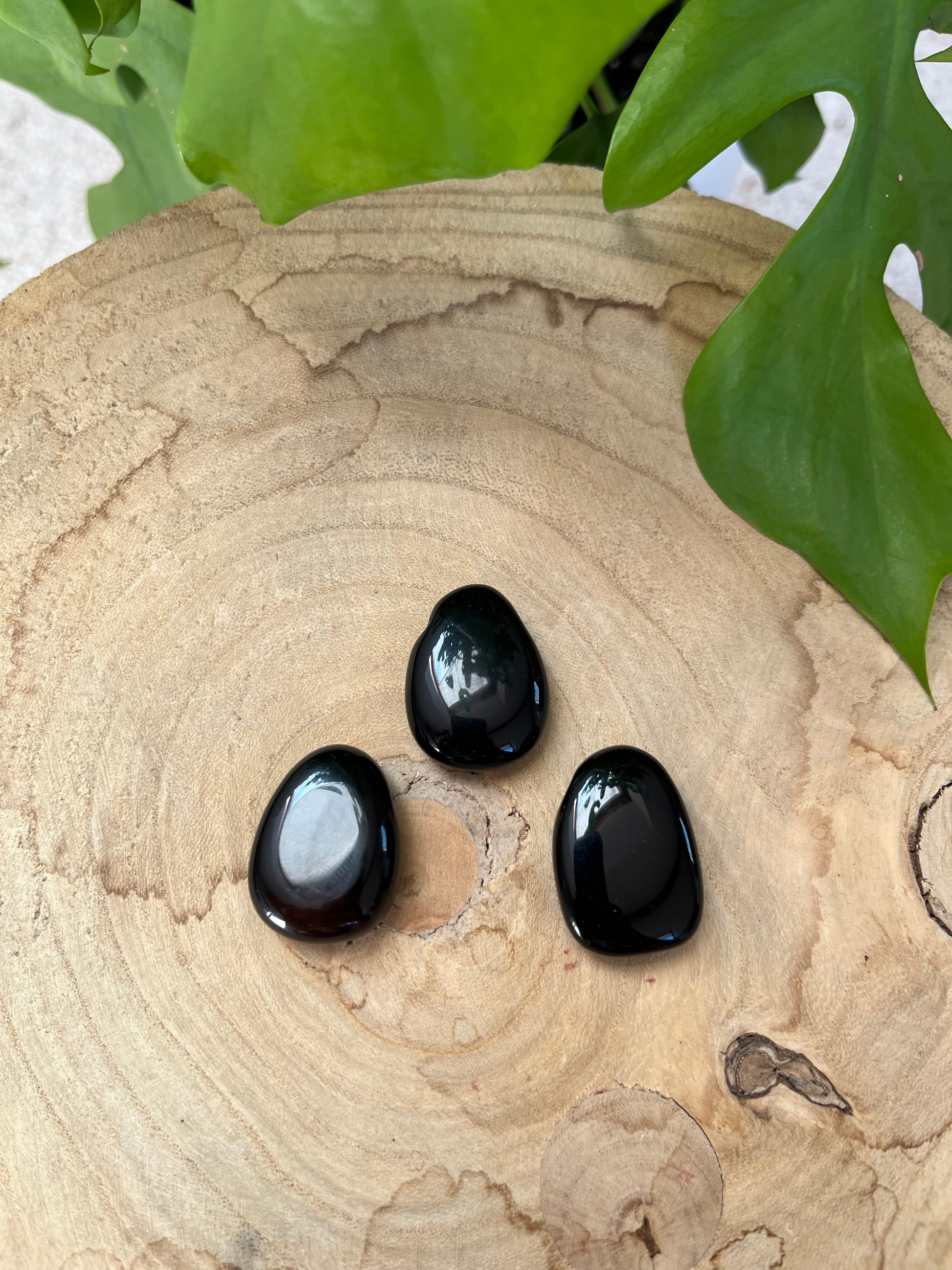 ⚫ Schwarzer Obsidian Trommelstein gebohrt – Schutz, Klarheit & Erdung