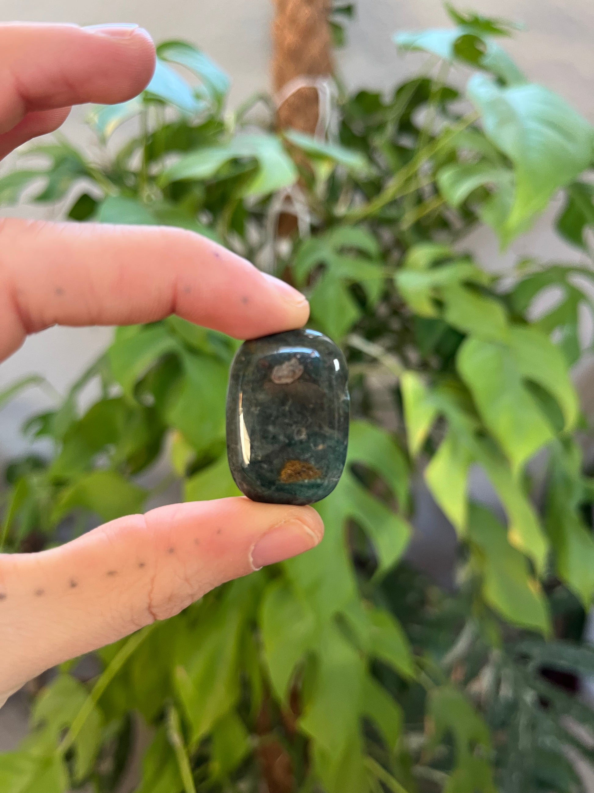 Der Ozeanjaspis steht symbolisch für Gelassenheit, Ausgleich und die Verbindung zu natürlichen Rhythmen. Durch die Trommelung liegt der Stein angenehm in der Hand und eignet sich dank der Bohrung ideal als tragbarer Begleiter. Das gratis Baumwollband macht ihn sofort einsatzbereit.