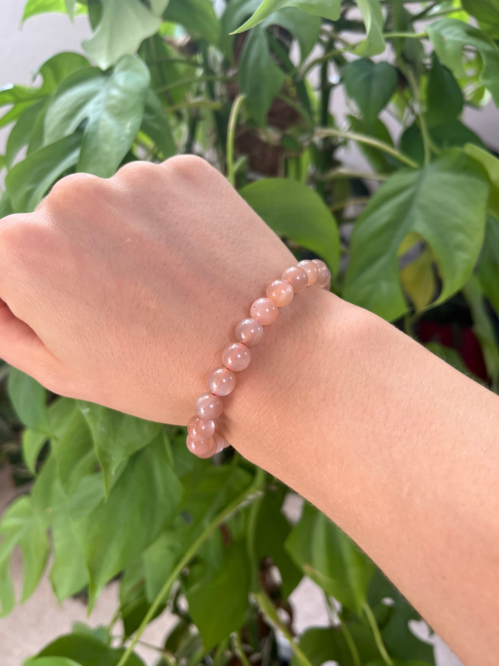 Pfirsich-Mondstein Kugelarmband – 6 mm oder 8 mm (AA-Qualität) Edelstein Schmuck