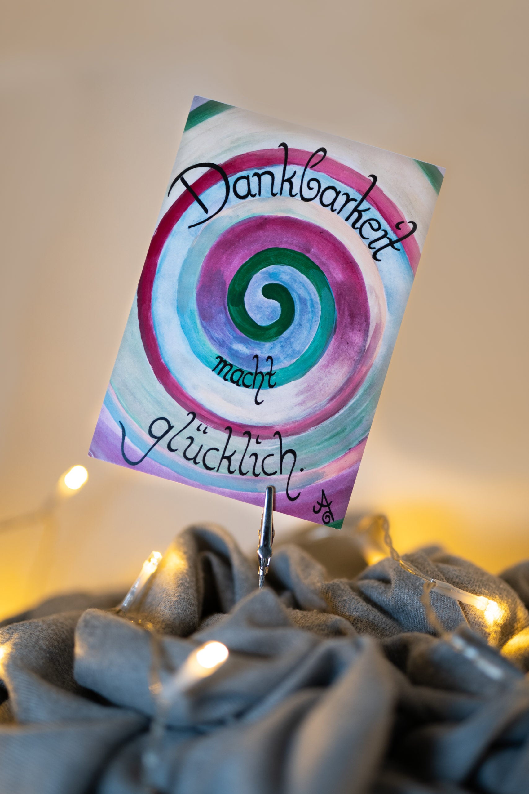 Handgemalte Spiralen mit Weisheiten oder Sprüchen.