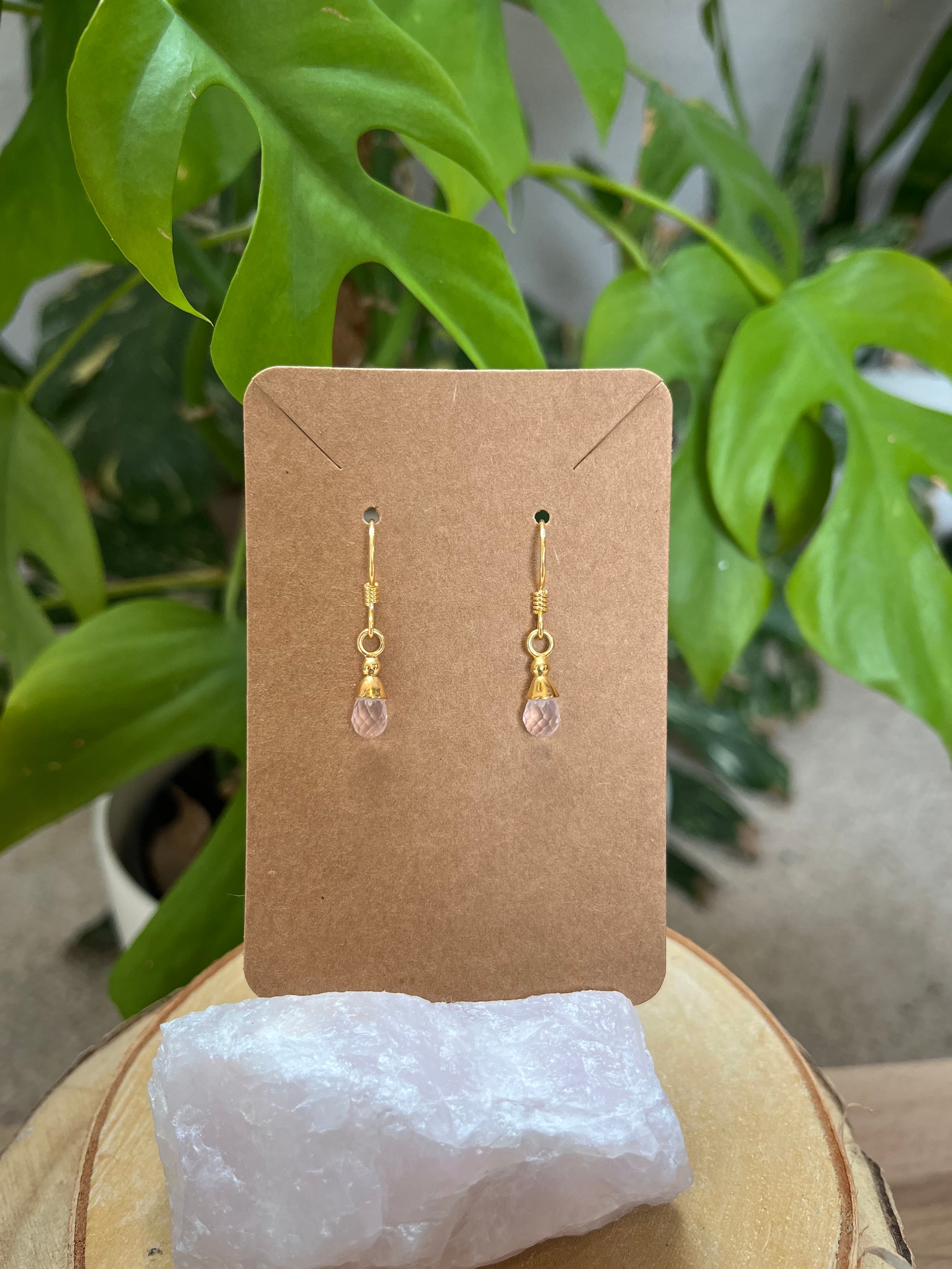 Rosenquarz Tropfen Ohrringe – facettiert | 925 Silber vergoldet