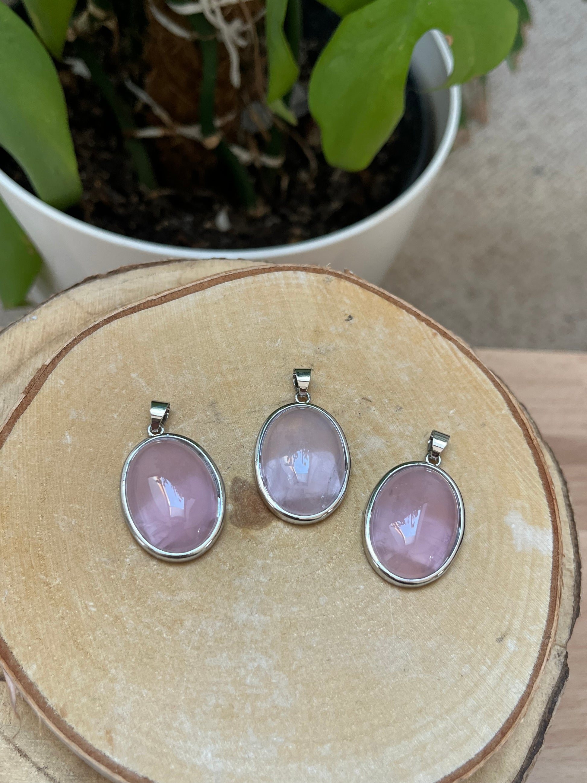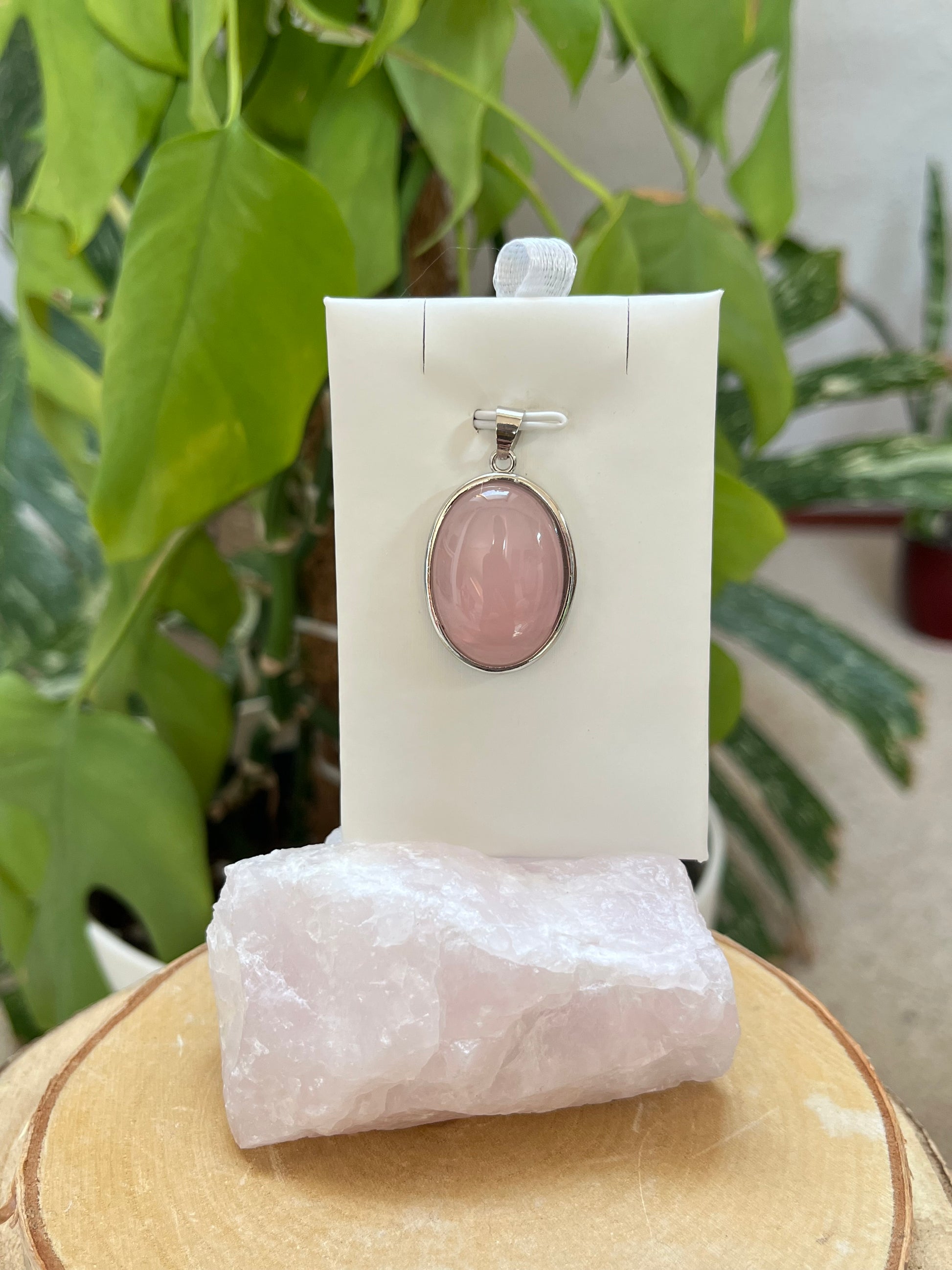 Rosenquarz Kettenanhänger 925 Silber gefasst oval – Echter Edelstein Anhänger Liebe & Herzchakra