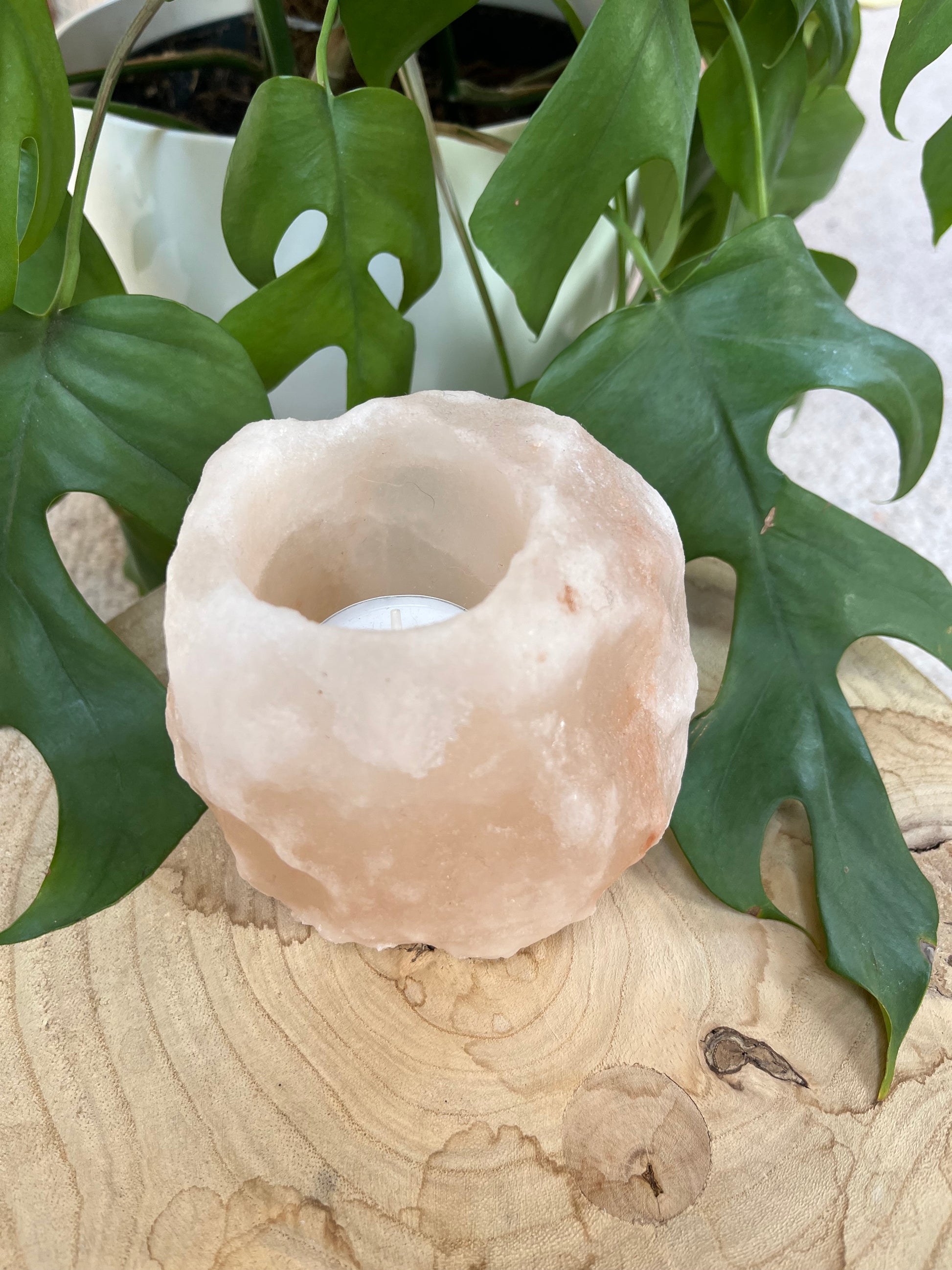 Salzkristall Teelicht naturbelassen. Macht ein Wunderschönes orangefarbenes Licht. Und verzaubert eurer Zimmer im hellen und im Dunkeln.