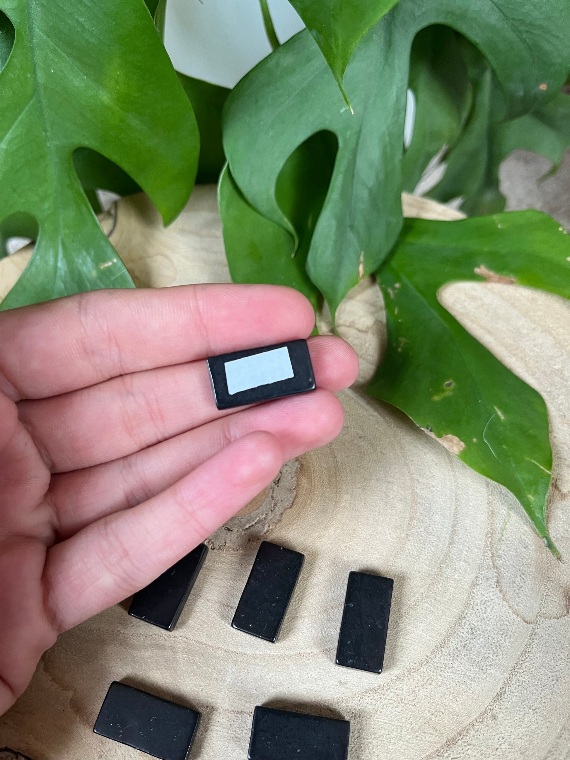 Die Plättchen sind ca 2x1cm und ca 0,4cm dick. Sie haben auf der Rückseite eine kleine Klebefolie um sie am Handy, Laptop, oder Computer anzubringen.