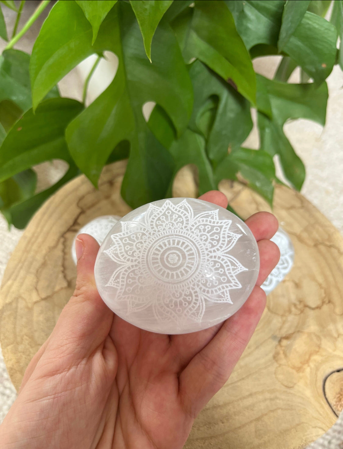 Selenit Handschmeichler, Taschenstein in weiß. Ethisch gewonnen.