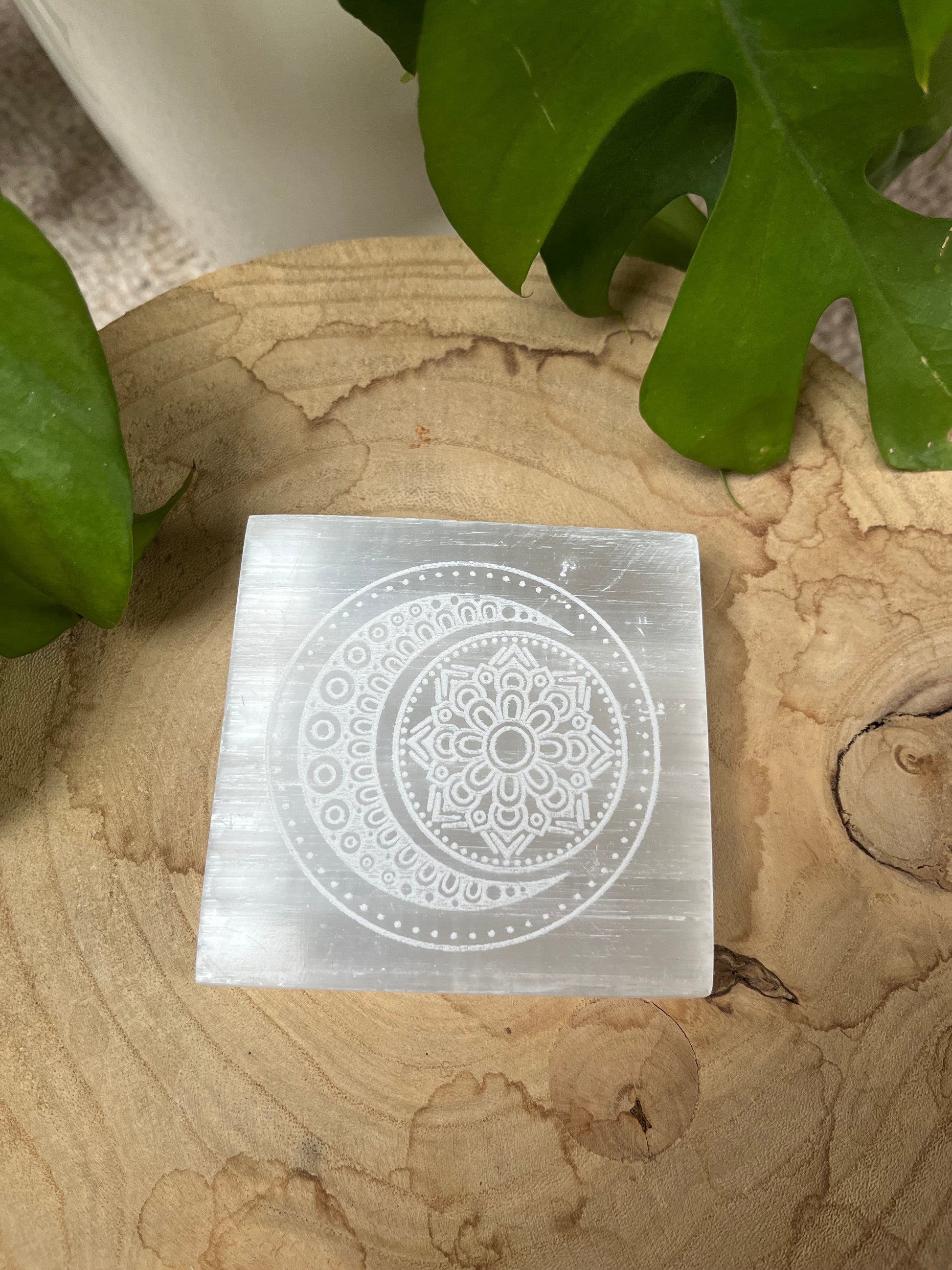 Rechteckige Ladeplatte aus Selenit 10x10cm