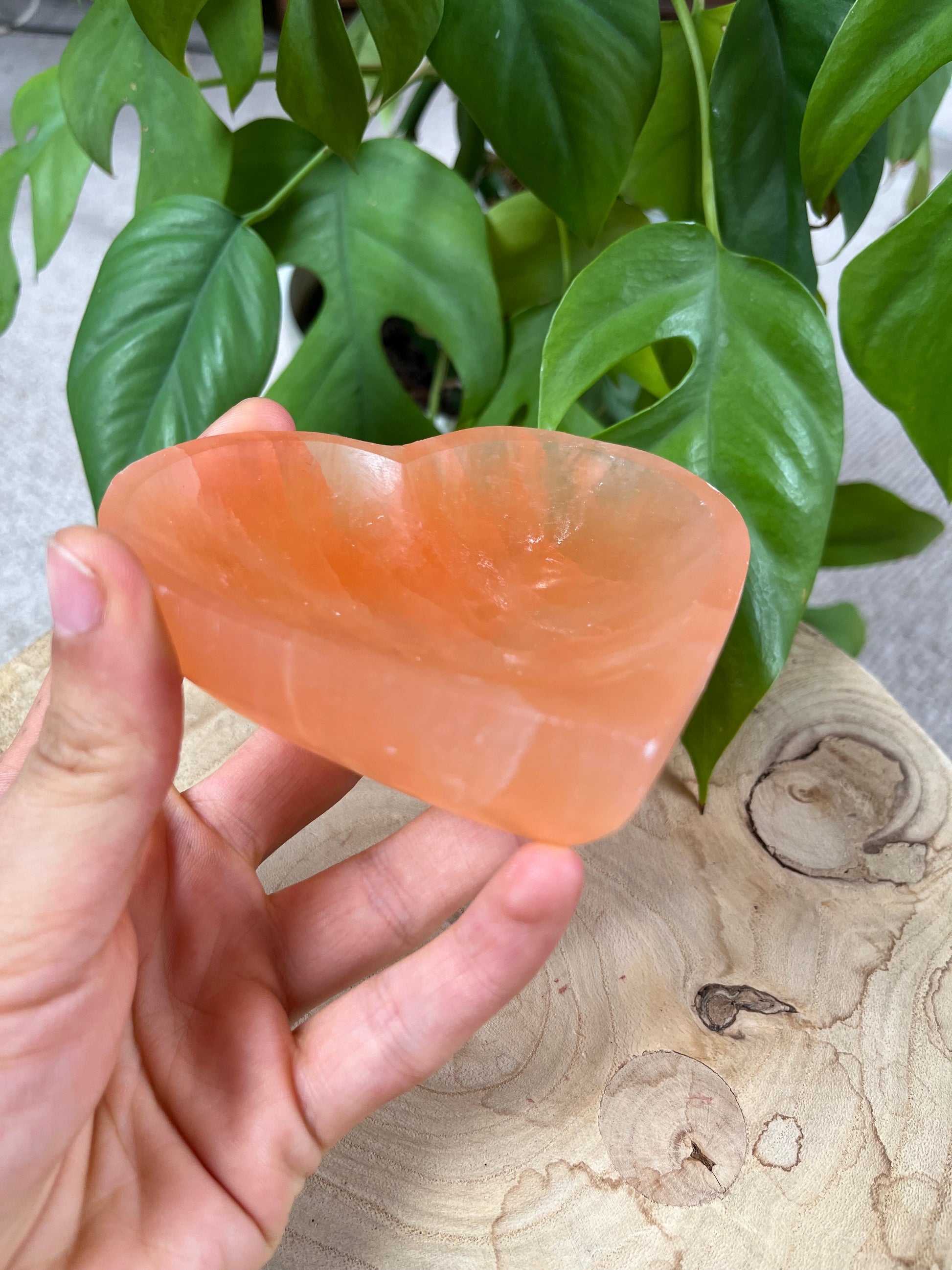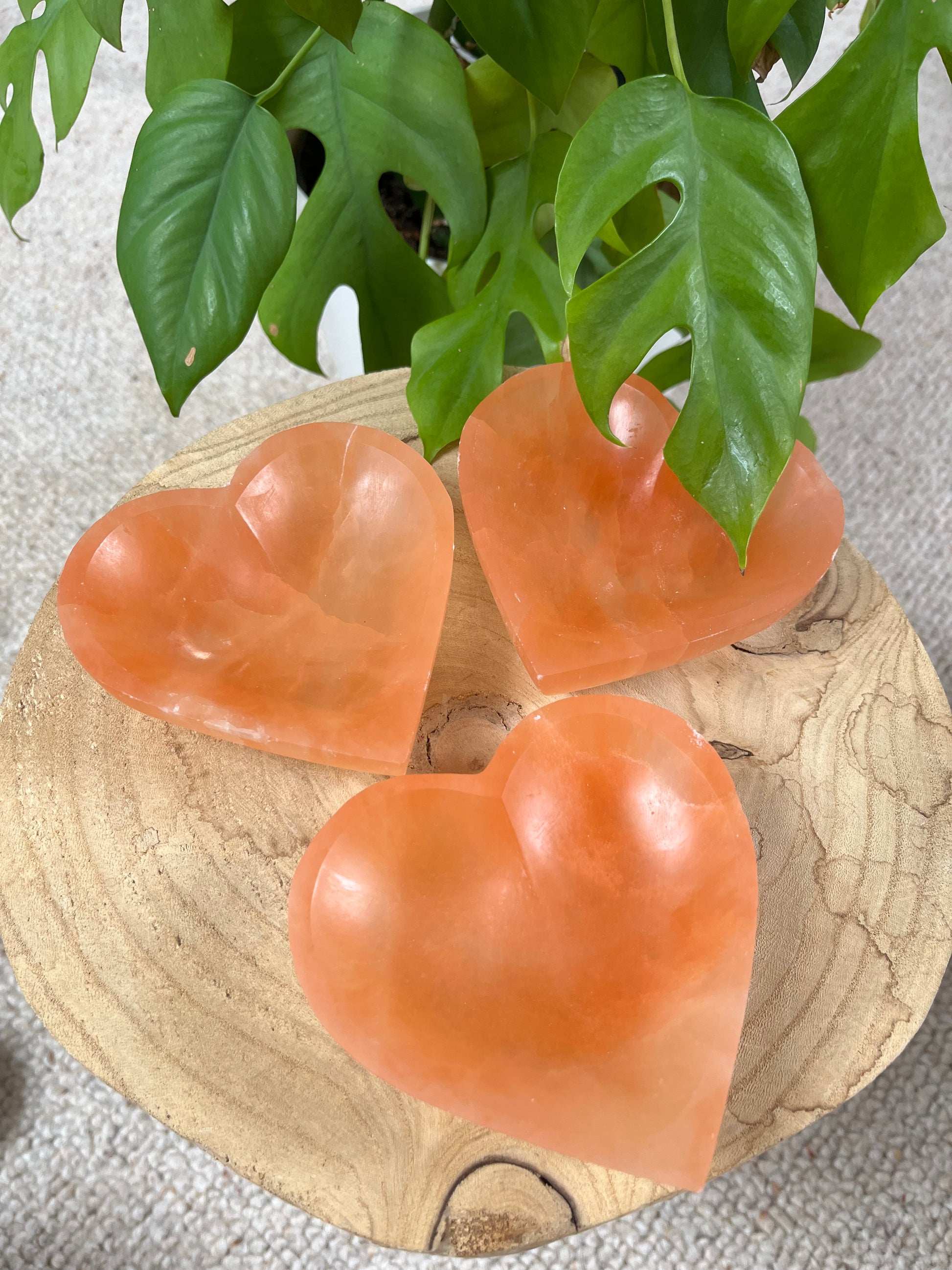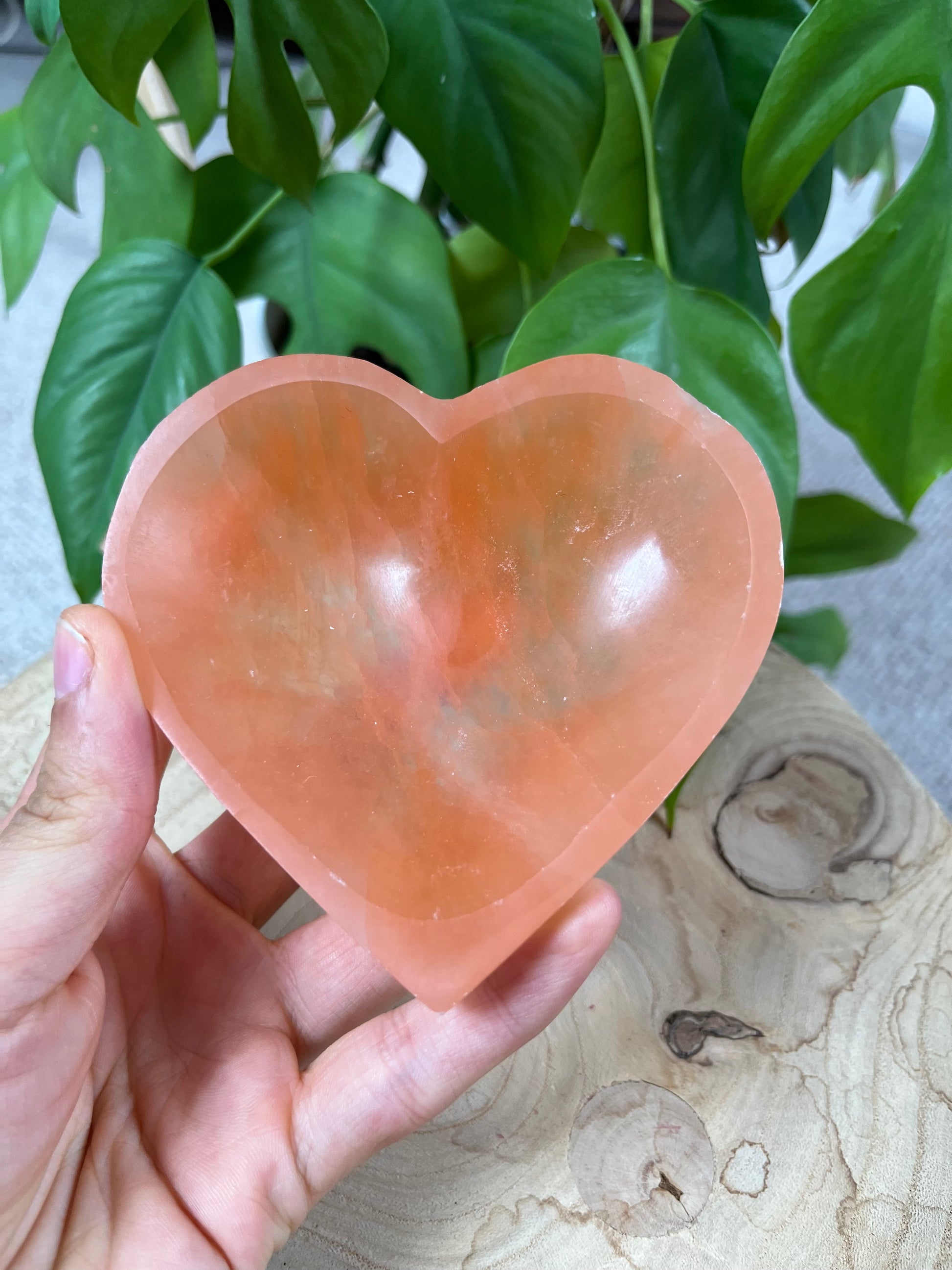 🧡 Orangefarbene Selenit-Schale in Herzform