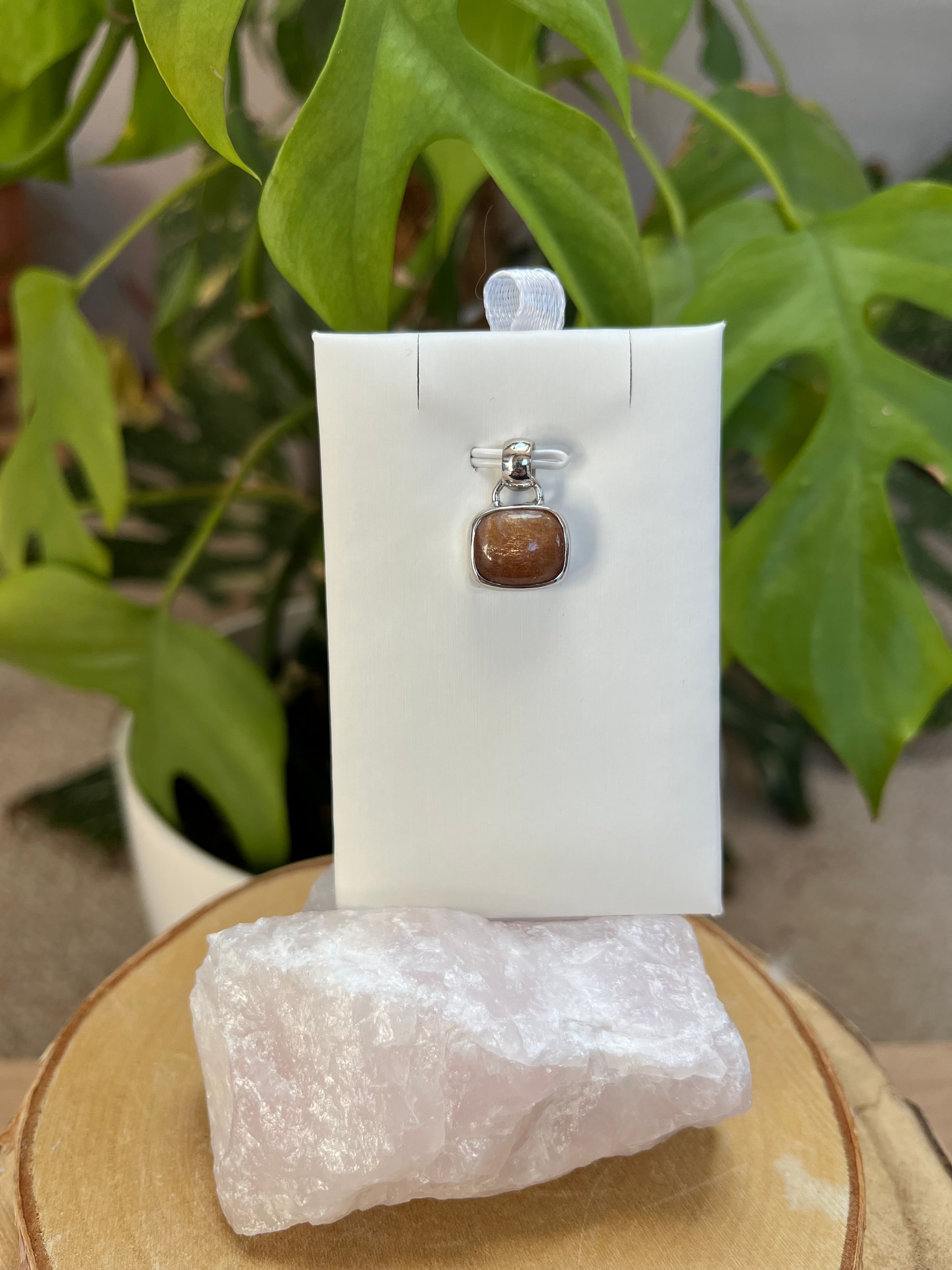 Sonnenstein Anhänger eckig 925 Silber gefasst – Edelstein Schmuck für Lebensfreude & Energie