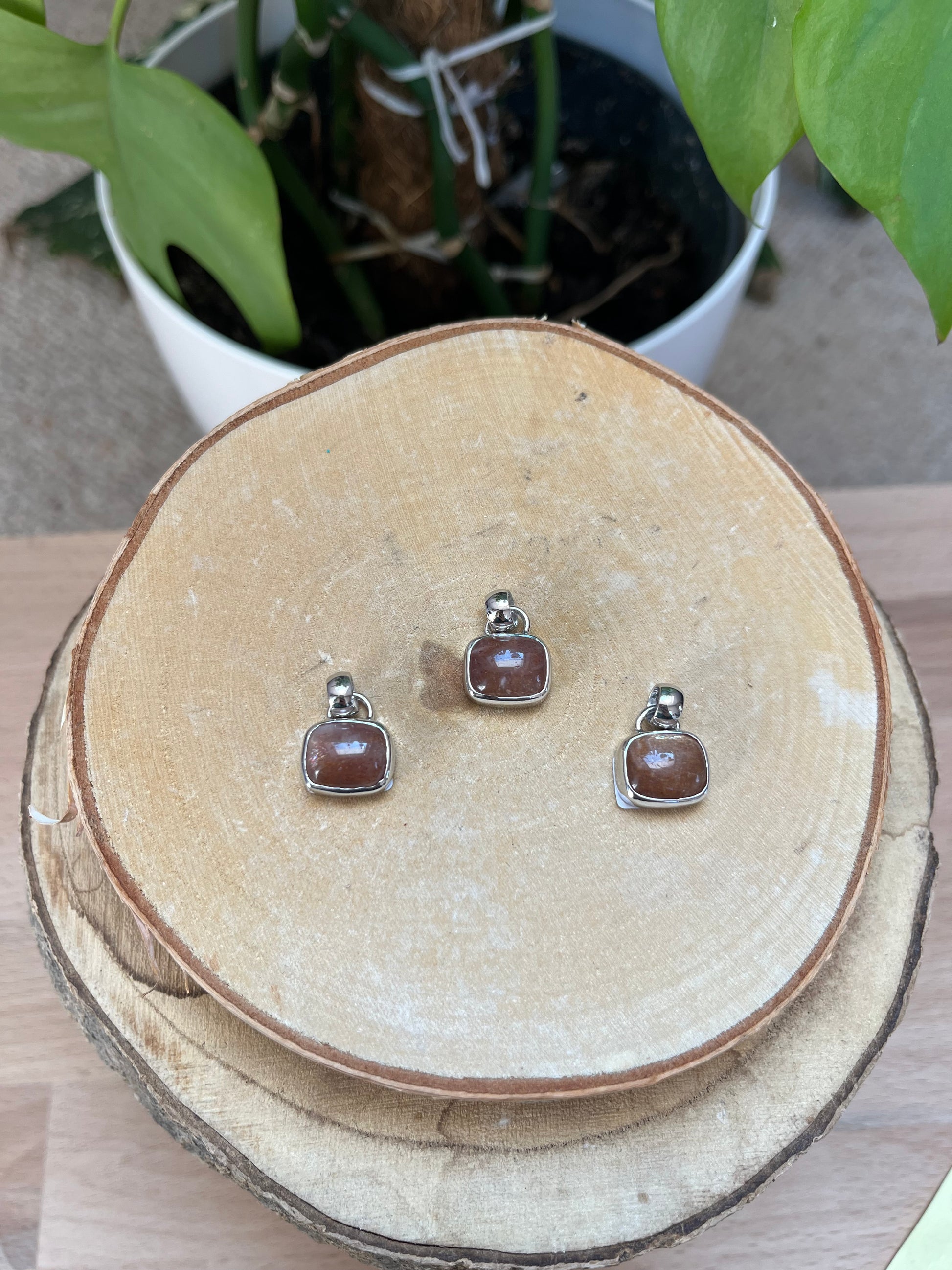 ✨ Sonnenstein Anhänger – eckig, 925 Silber gefasst