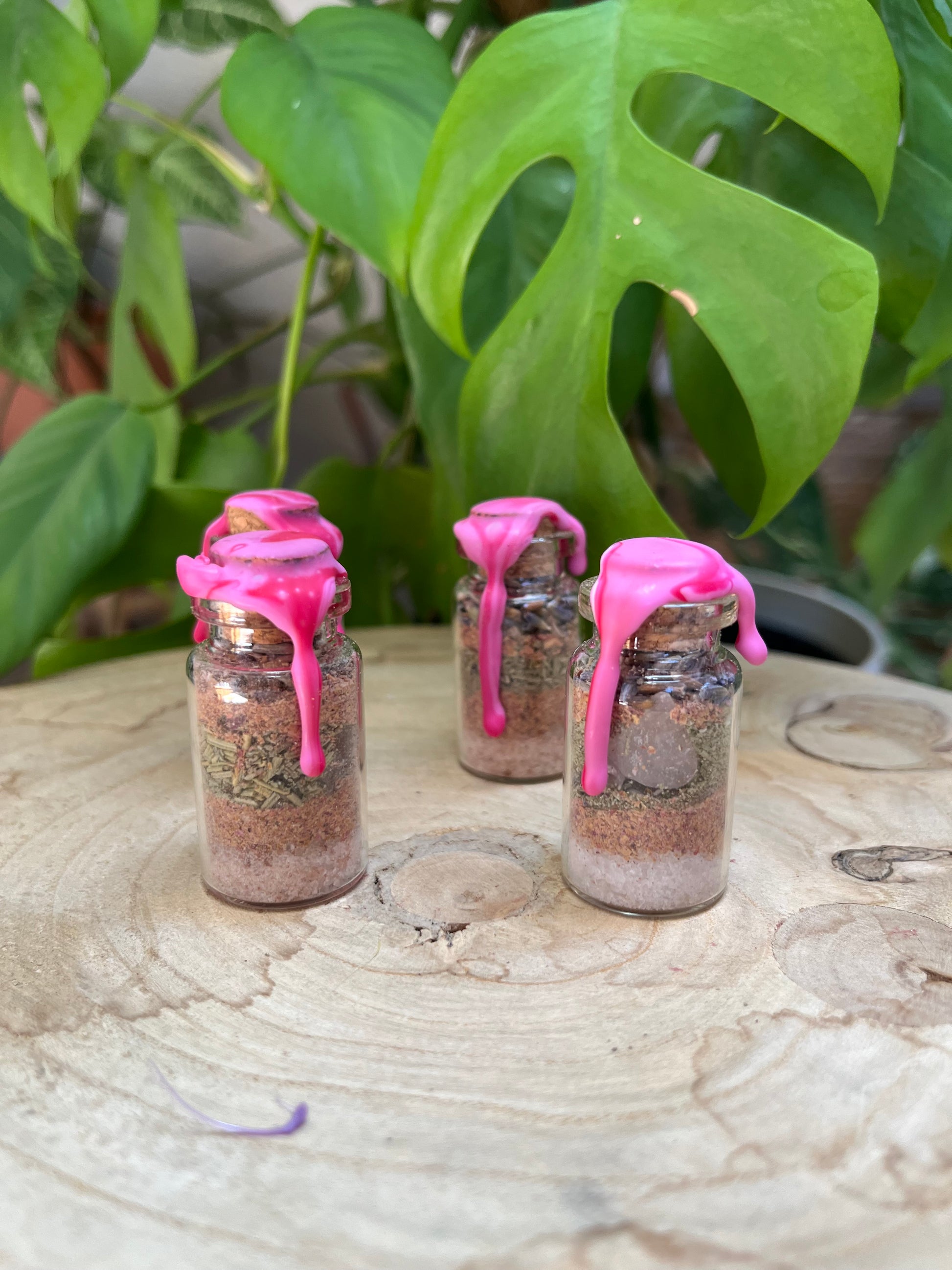 Dieses handgefertigte Spell Jar ist ein kraftvoller Liebeszauber in Glas – gefüllt mit ausgewählten Kräutern, einer Prise schützender Energie und einem sanft schimmernden Rosenquarz. Es steht für Herzöffnung, liebevolle Verbindungen und innere Harmonie.