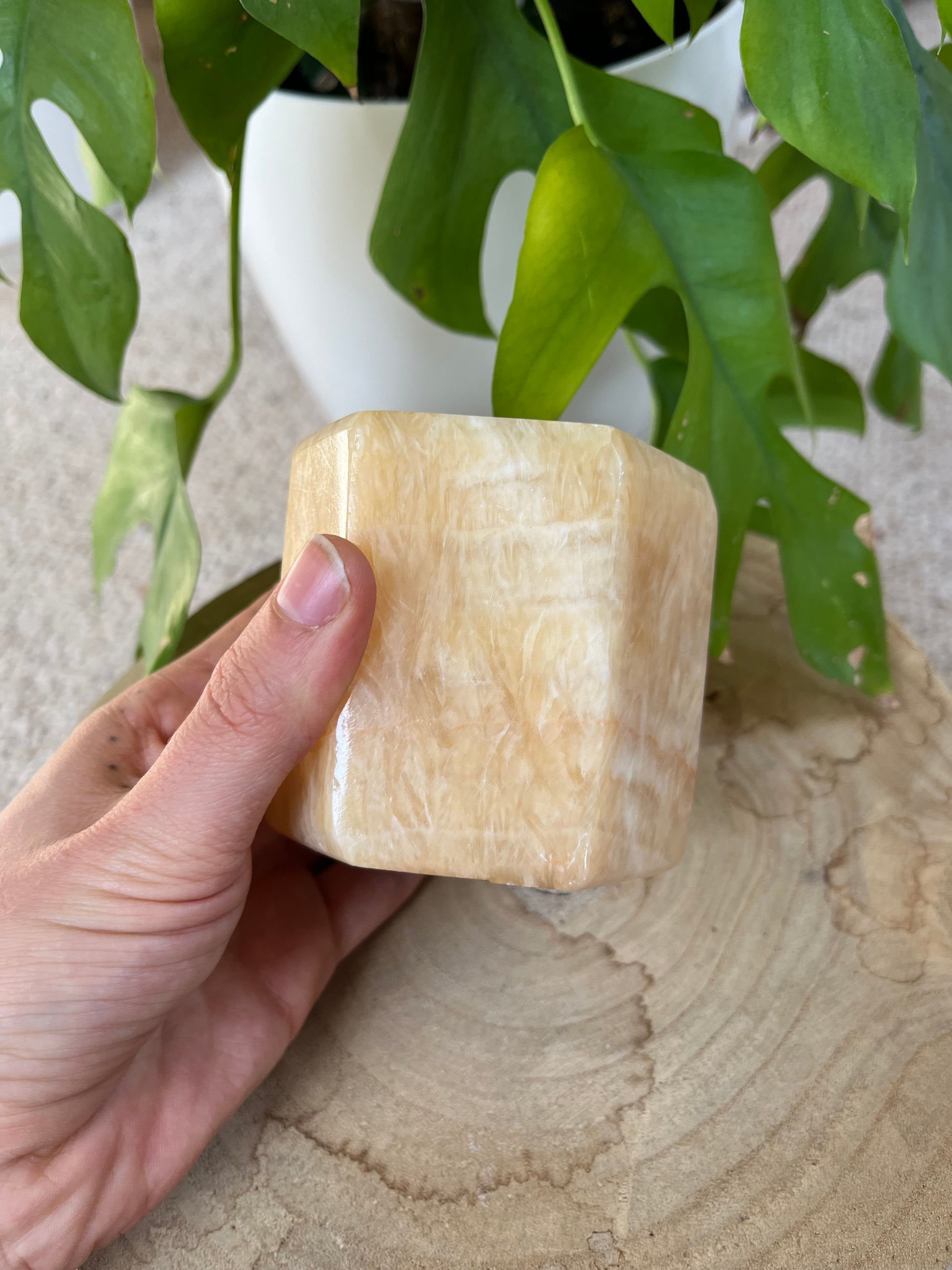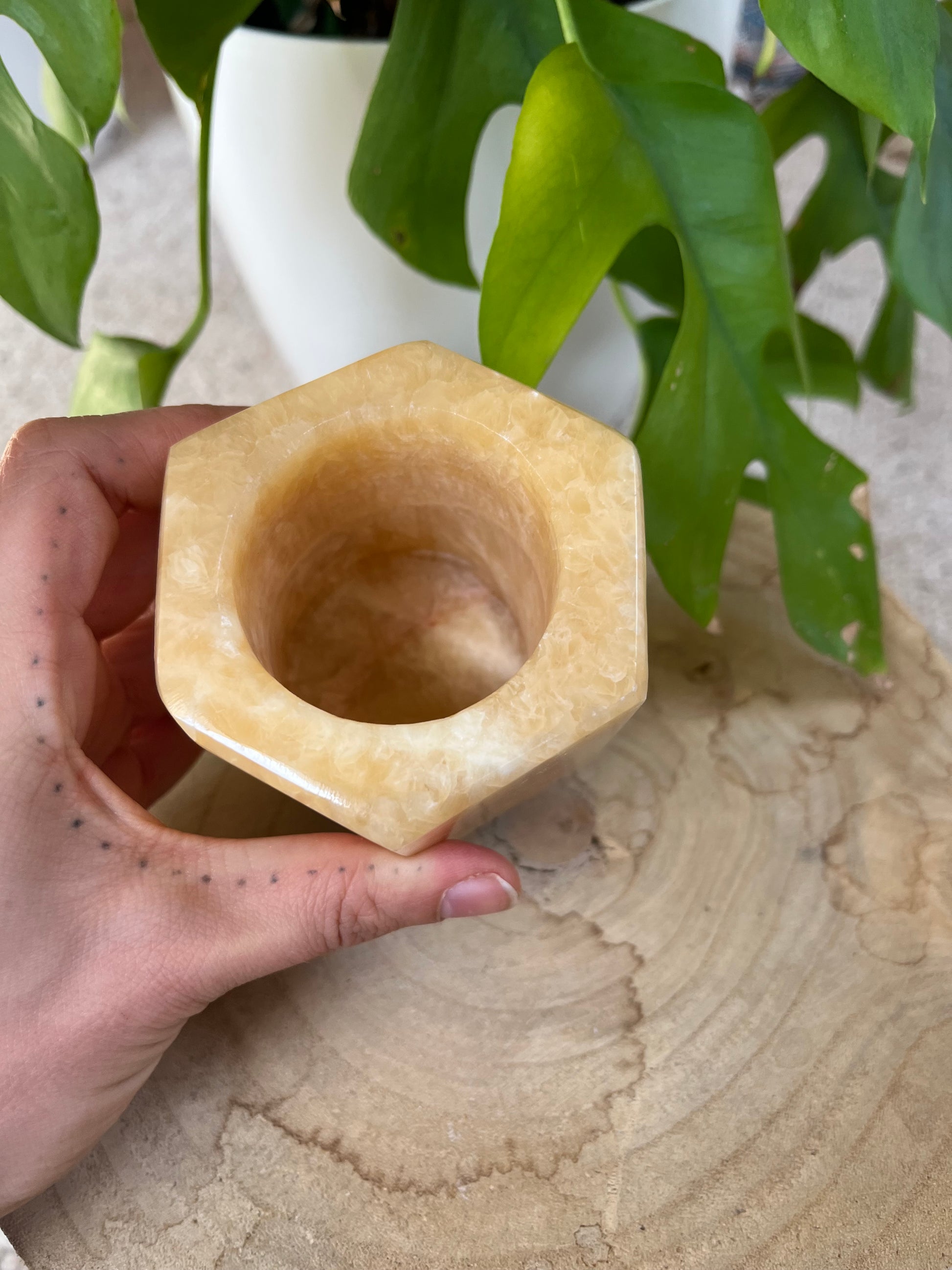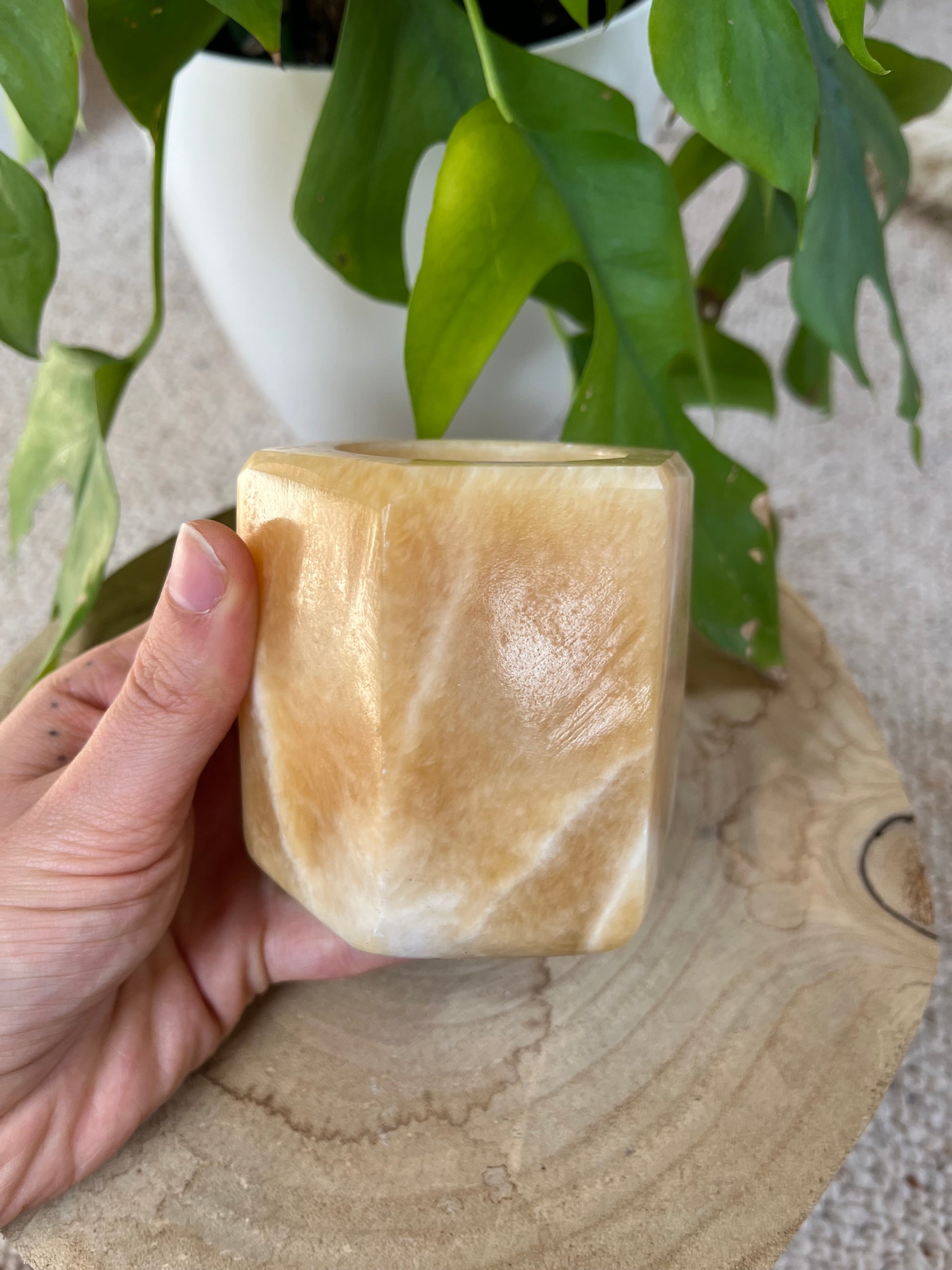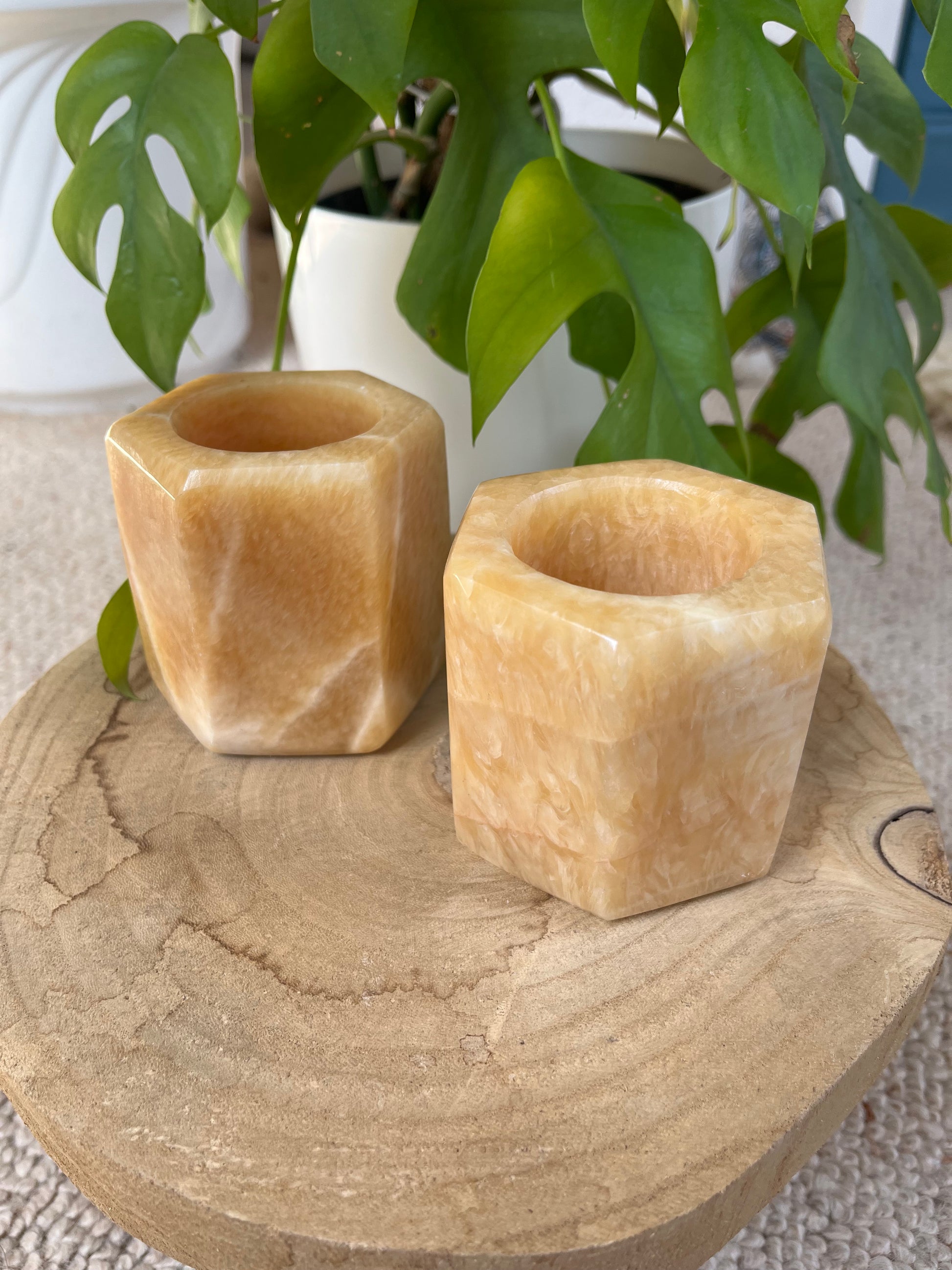 Oranger Calcit Teelichthalter – Licht & Wärme für dein Zuhause