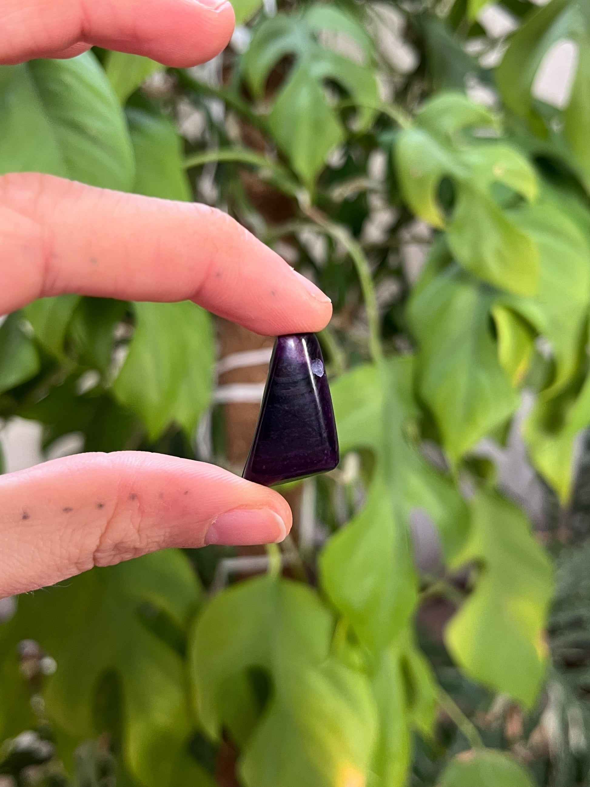 Der Sugilith steht symbolisch für Intuition, innere Klarheit und bewussten Ausdruck. Dank der Bohrung und dem inklusive schwarzen Baumwollband kann der Trommelstein direkt getragen werden – schlicht, naturverbunden und alltagstauglich.