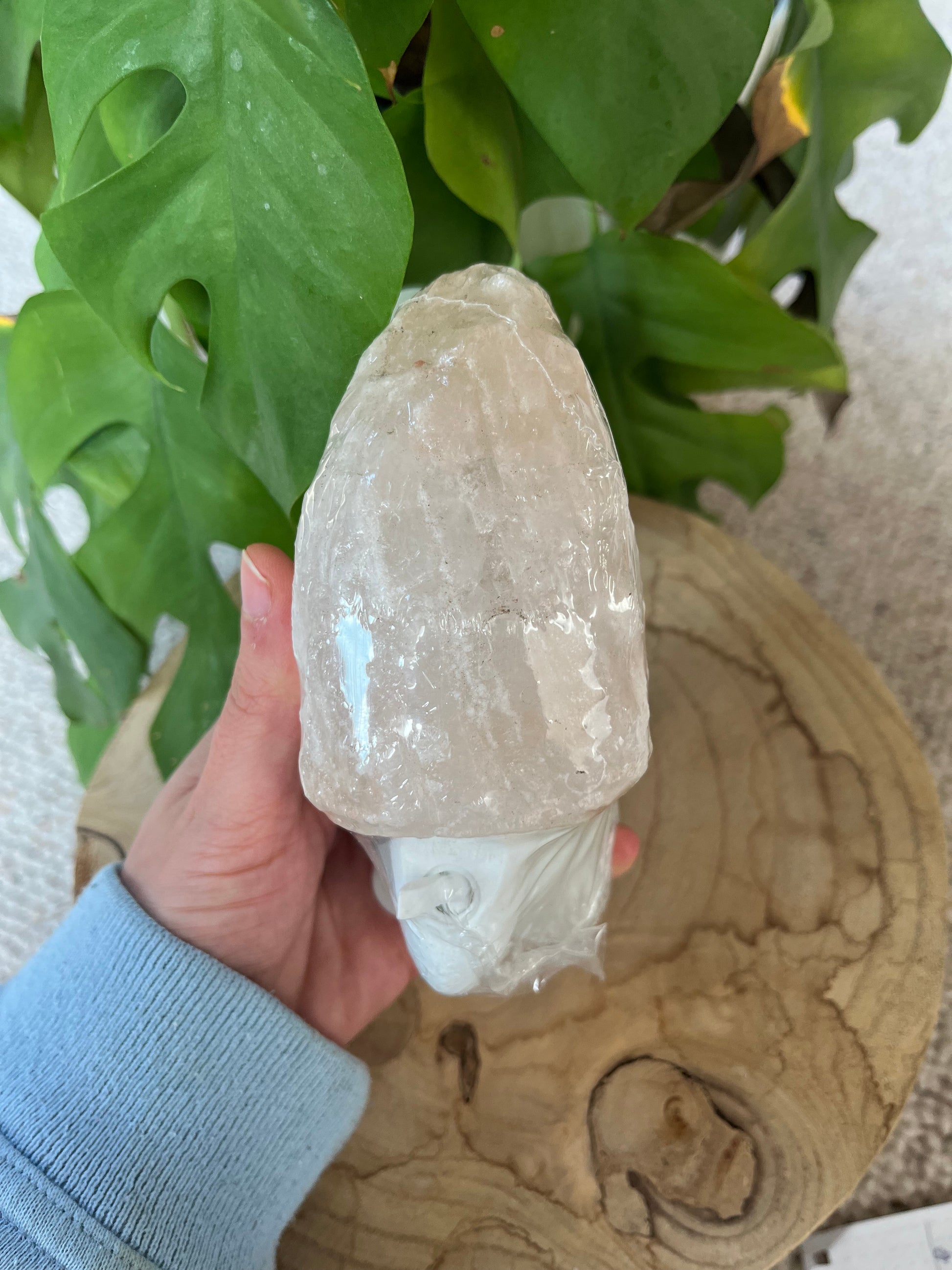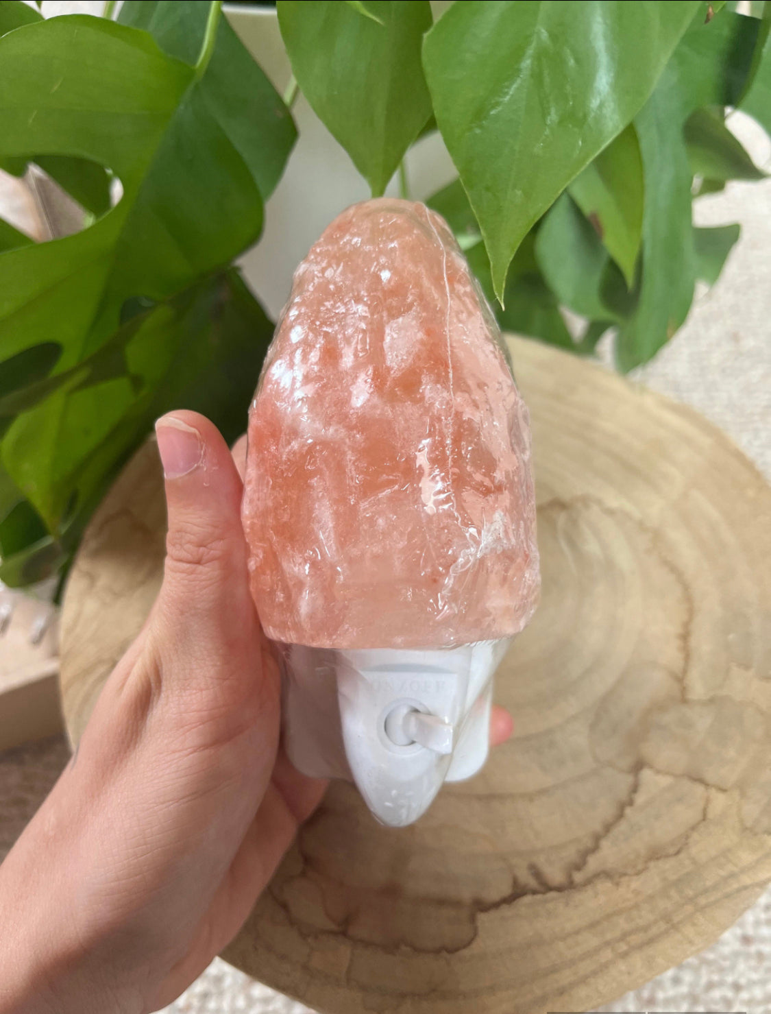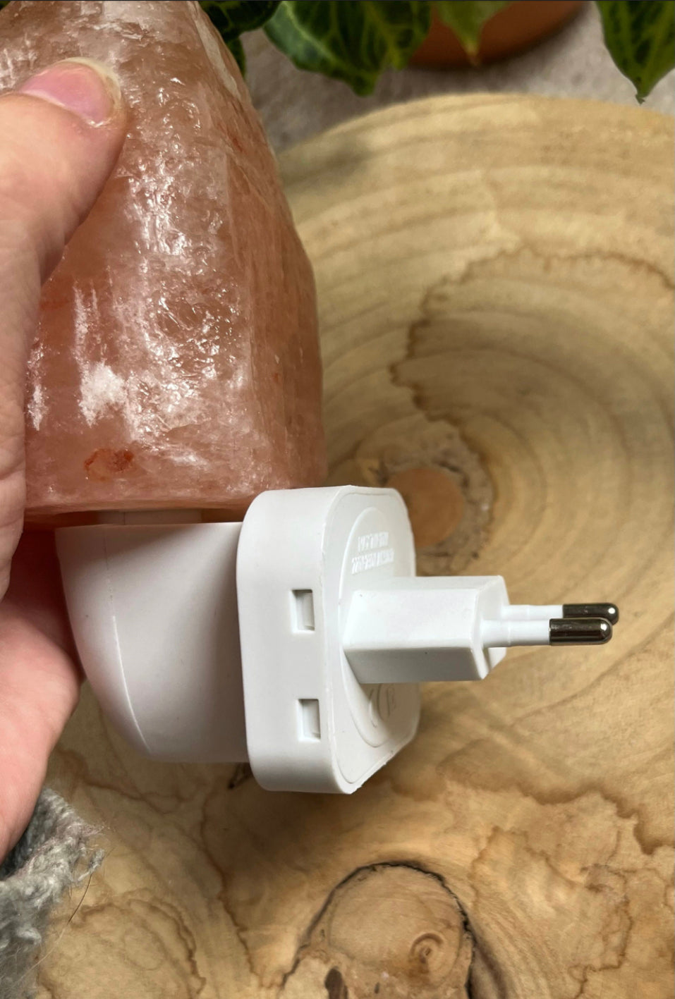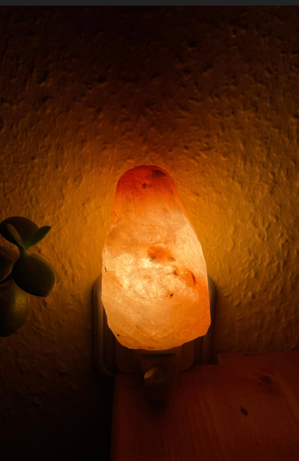 Salzkristall Nachtlampe naturbelassen. Mit ein und Ausschalter für die Steckdose. Macht ein Wunderschönes orangefarbenes Licht. Und verzaubert eurer Zimmer im hellen und im Dunkeln.